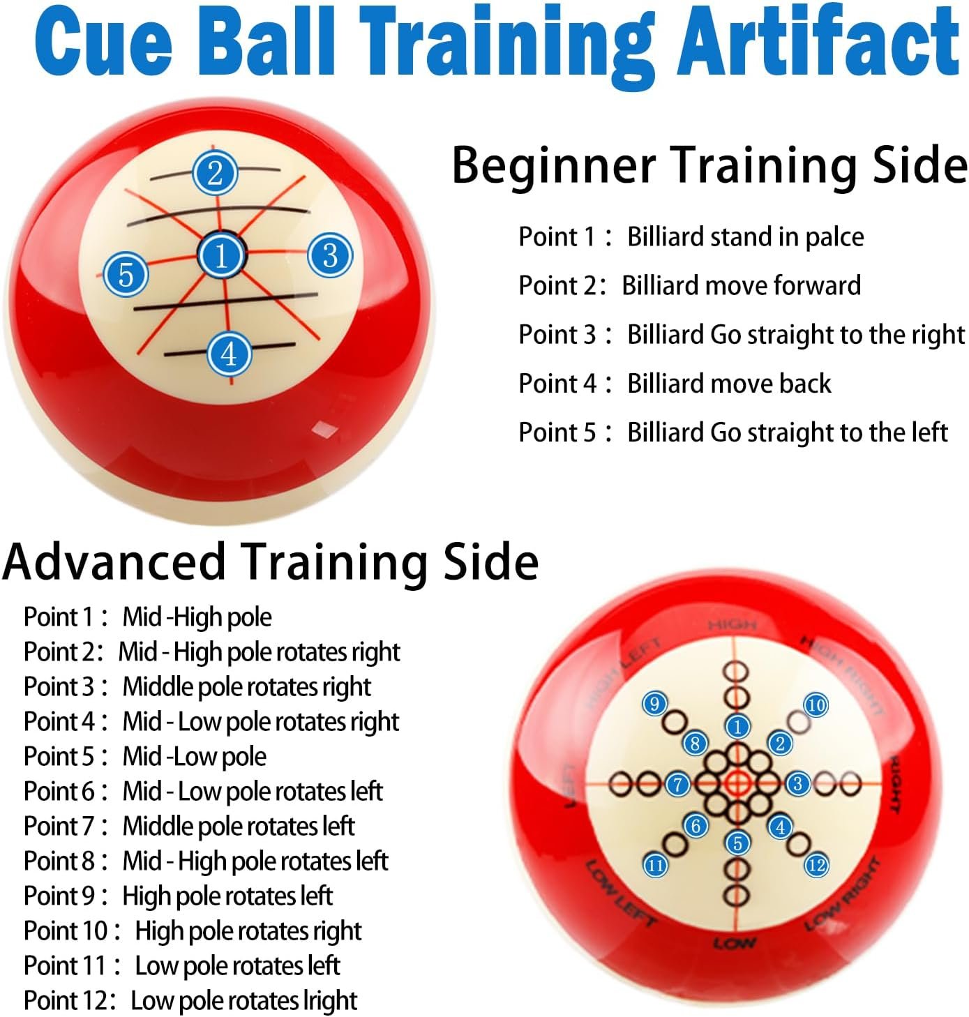 Billiards Cue Ball Practice Training Artifact or 6 Red Dots Cue Ball,2-1/4″,with Black PU Case