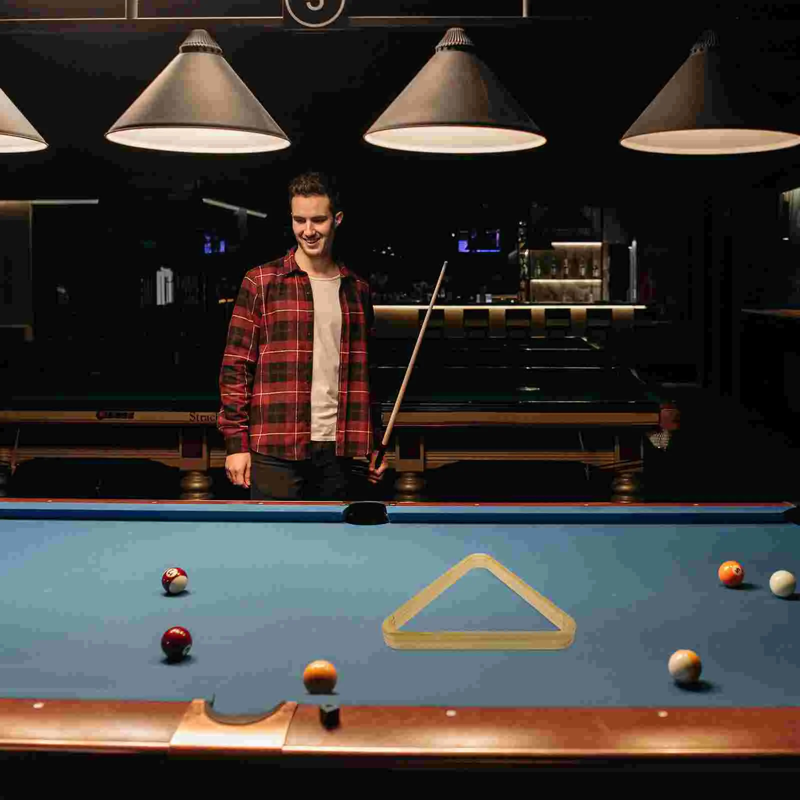 1 review for Billiards Balls Frame Table Top Tripod Games Balls Holders Triangle Racks Cue Wooden Mini Pool Organizer Retro Style