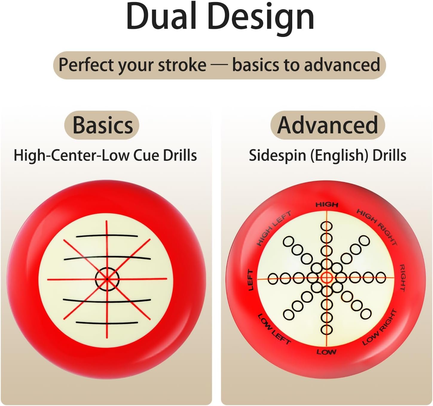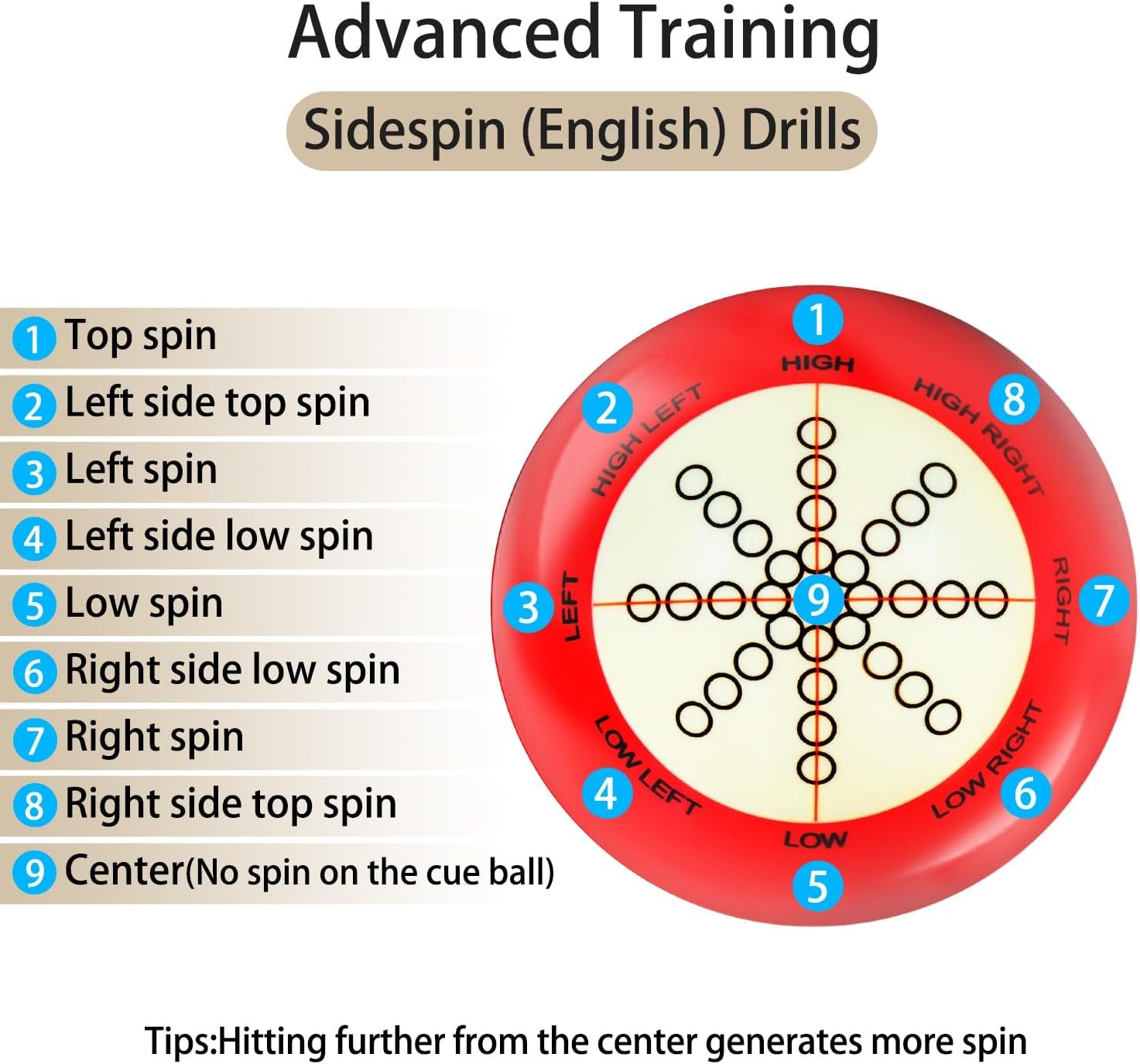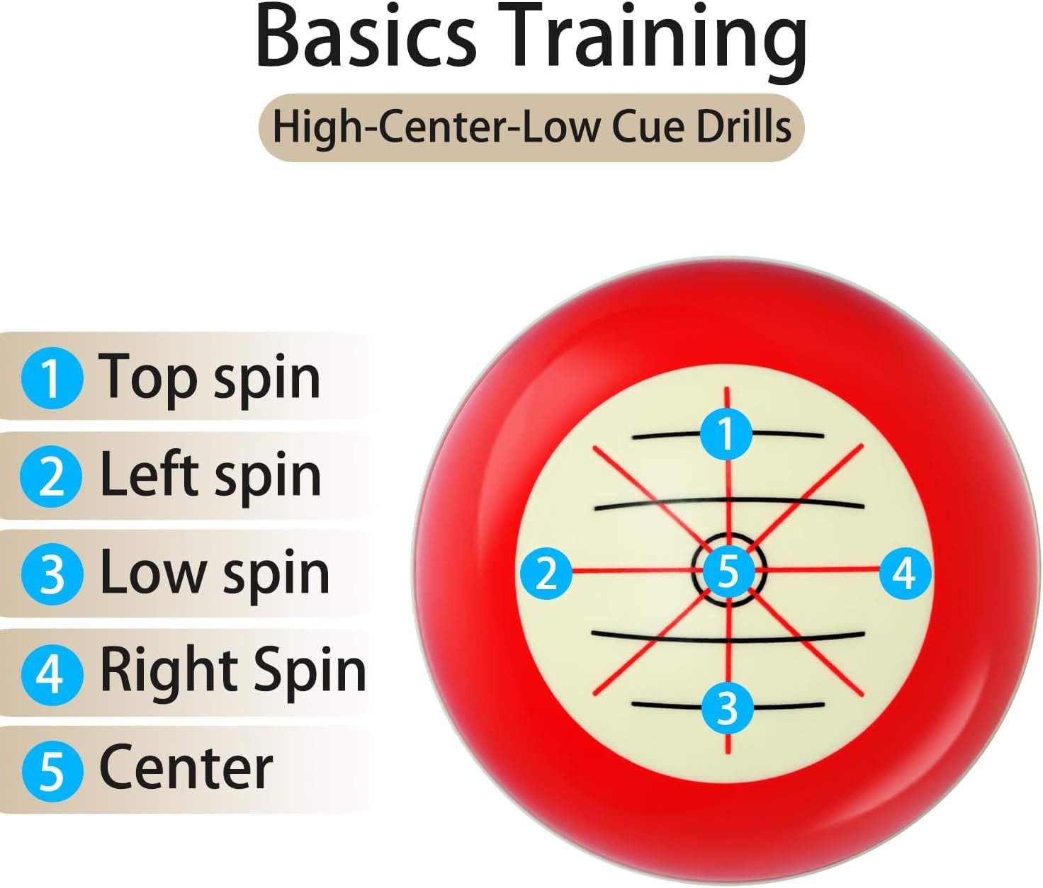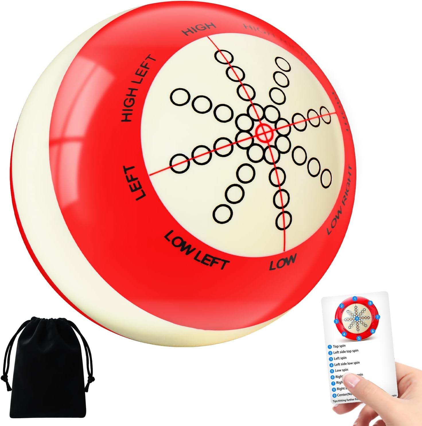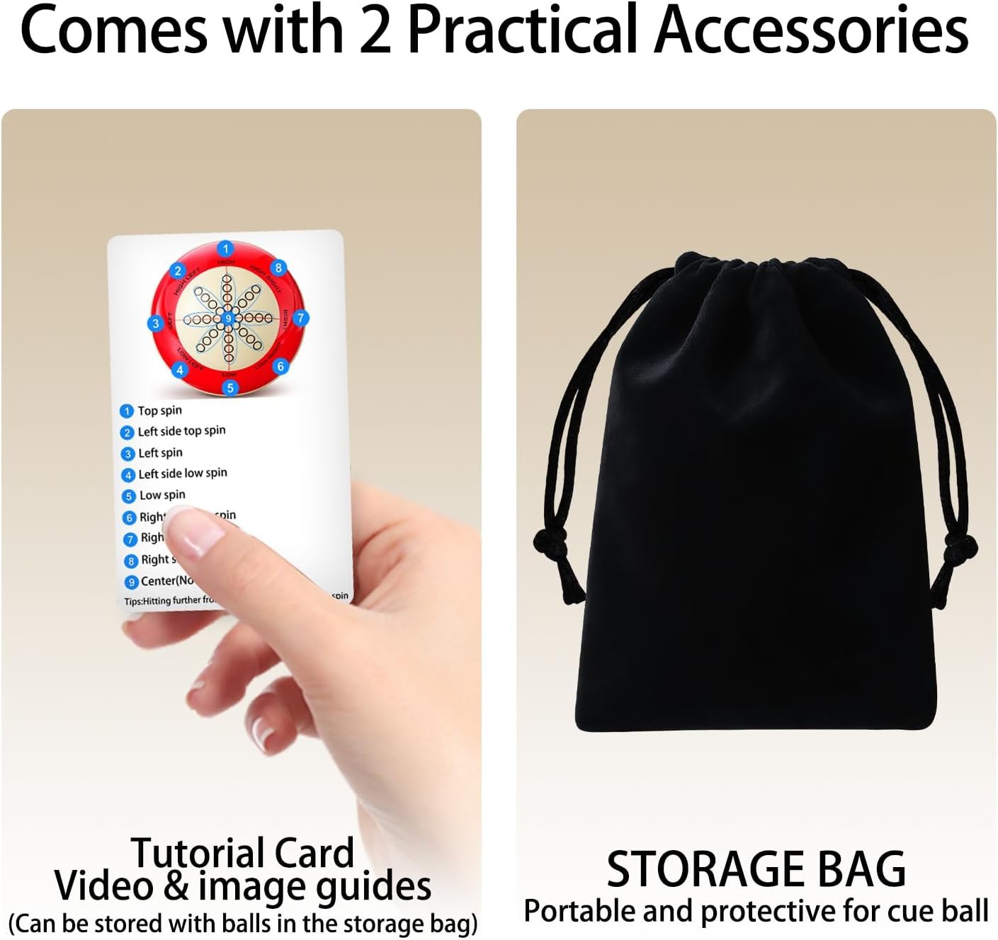 【Quick Start & Portable】If you love pool but struggle with cue ball control, this game-changer is made for you! We provide illustrated and video tutorials showing the effects of different cue strike points. Includes a portable storage bag. With our billiard training cue ball you can dramatically shorten your learning curve and fast-track your skills to an expert level.