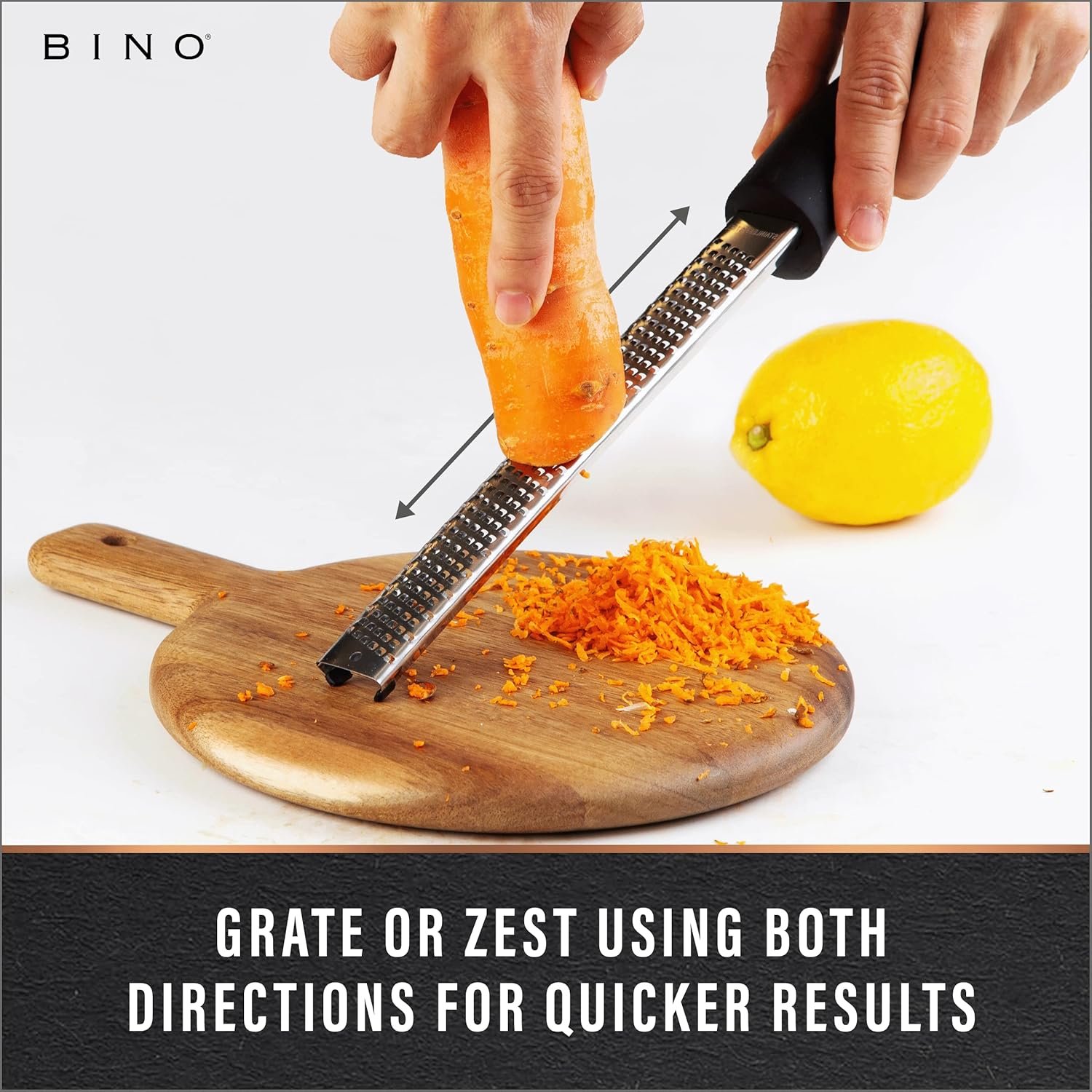 BINO Stainless Steel Rasp-Style Grater | Parmesan Grater | Zester Tool | Kitchen Handheld Graters | Culinary Tools | Lemon & Orange Zester | Spice Grater | Cooking & Baking Utensils & Accessories