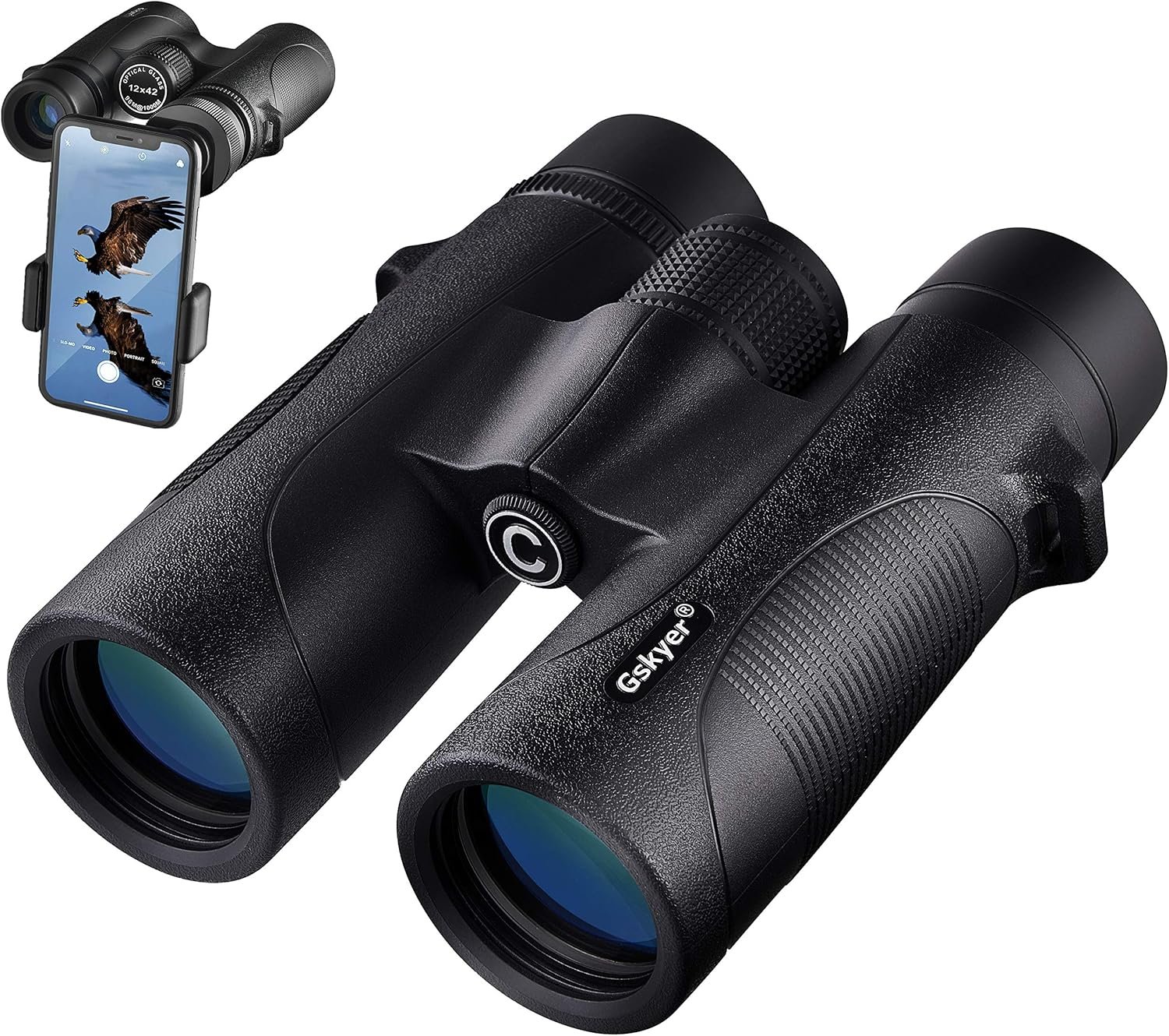 Binoculars for Adults High Powered: 12×42 HD Zoom Binocular for Bird Watching Hunting – Powerful Lightweight Waterproof Binoculars with Phone Adapter for Travel Cruise Ship Stargazing Hiking