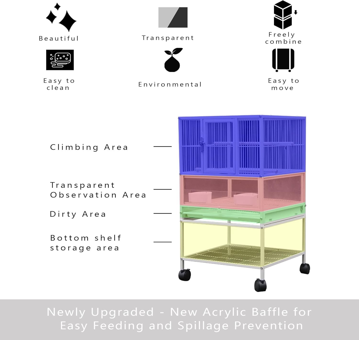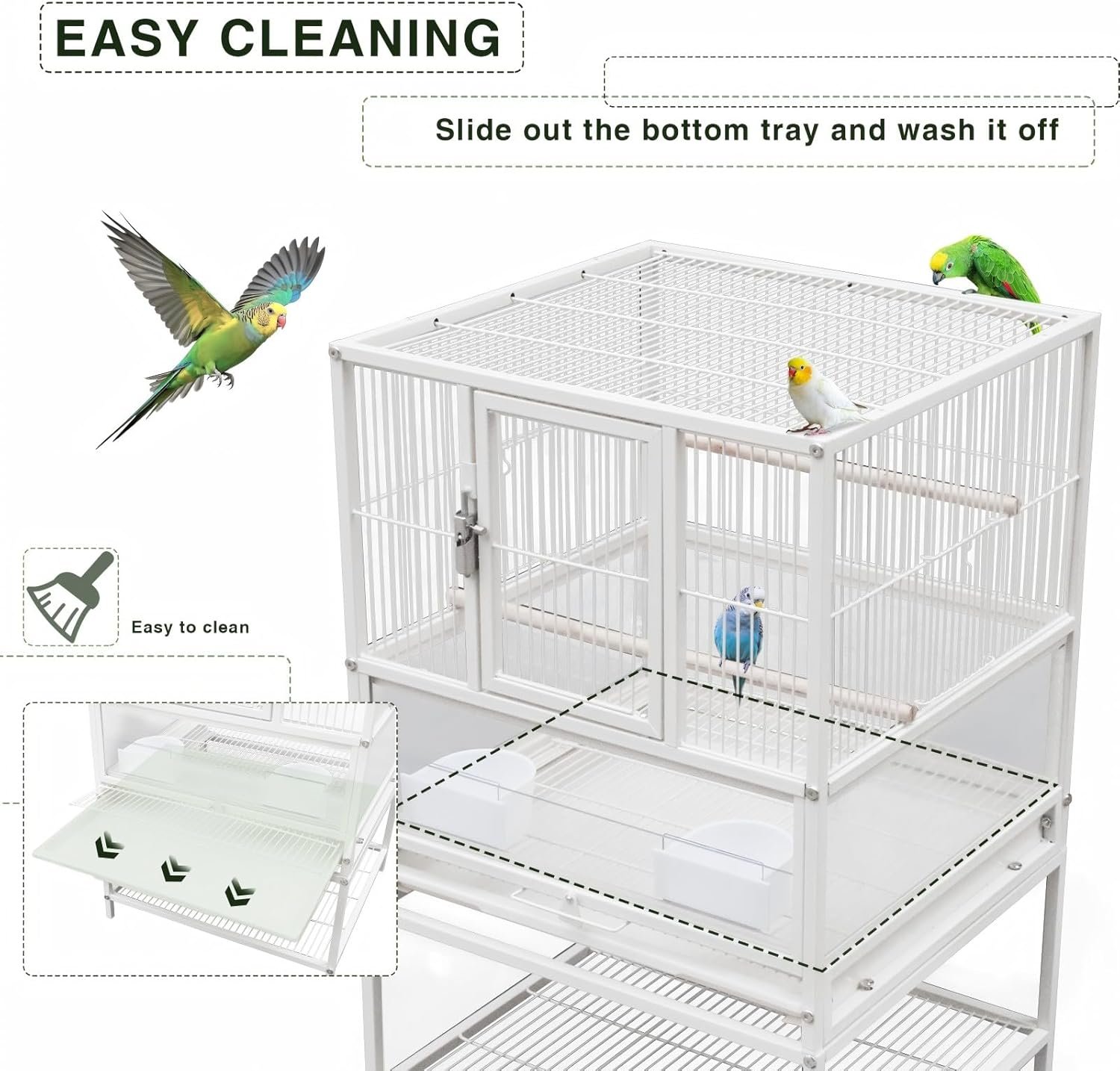 EASY TO CLEAN: Made of High Quality Acrylic, can be cleaned with water, comes with a large bottom divider for putting birds in contact with garbage, drawer chassis is easy to pull out for cleaning.