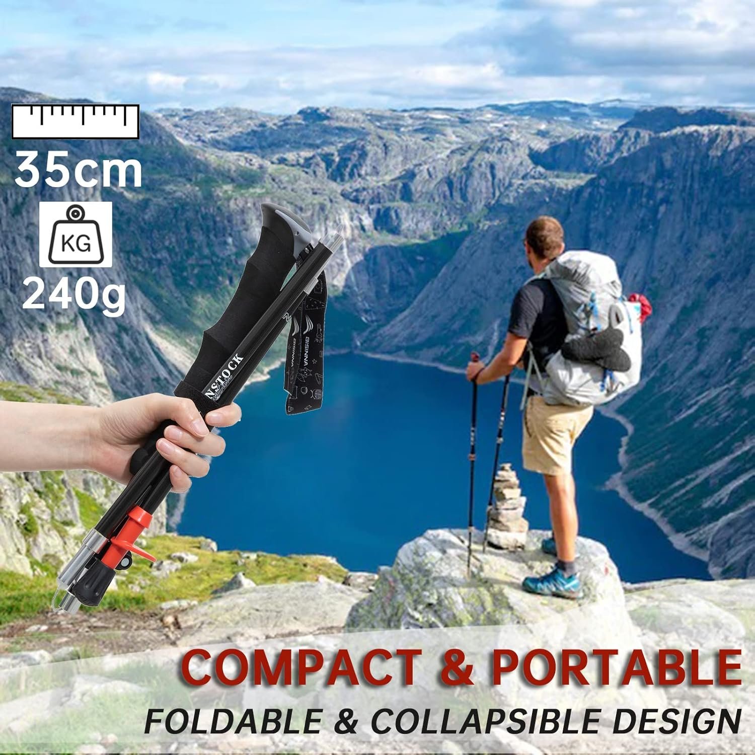 【Ultra compact and Portable】 BISINNA Hiking poles provids telescopic and foldable tri-fold design. When out and about, every inch in your backpack counts, so we designed our hiking sticks with portability in mind. They can be folded down to only 13.77 inches(35cm), allowing you to fit them into most bags and suitcases with easy.