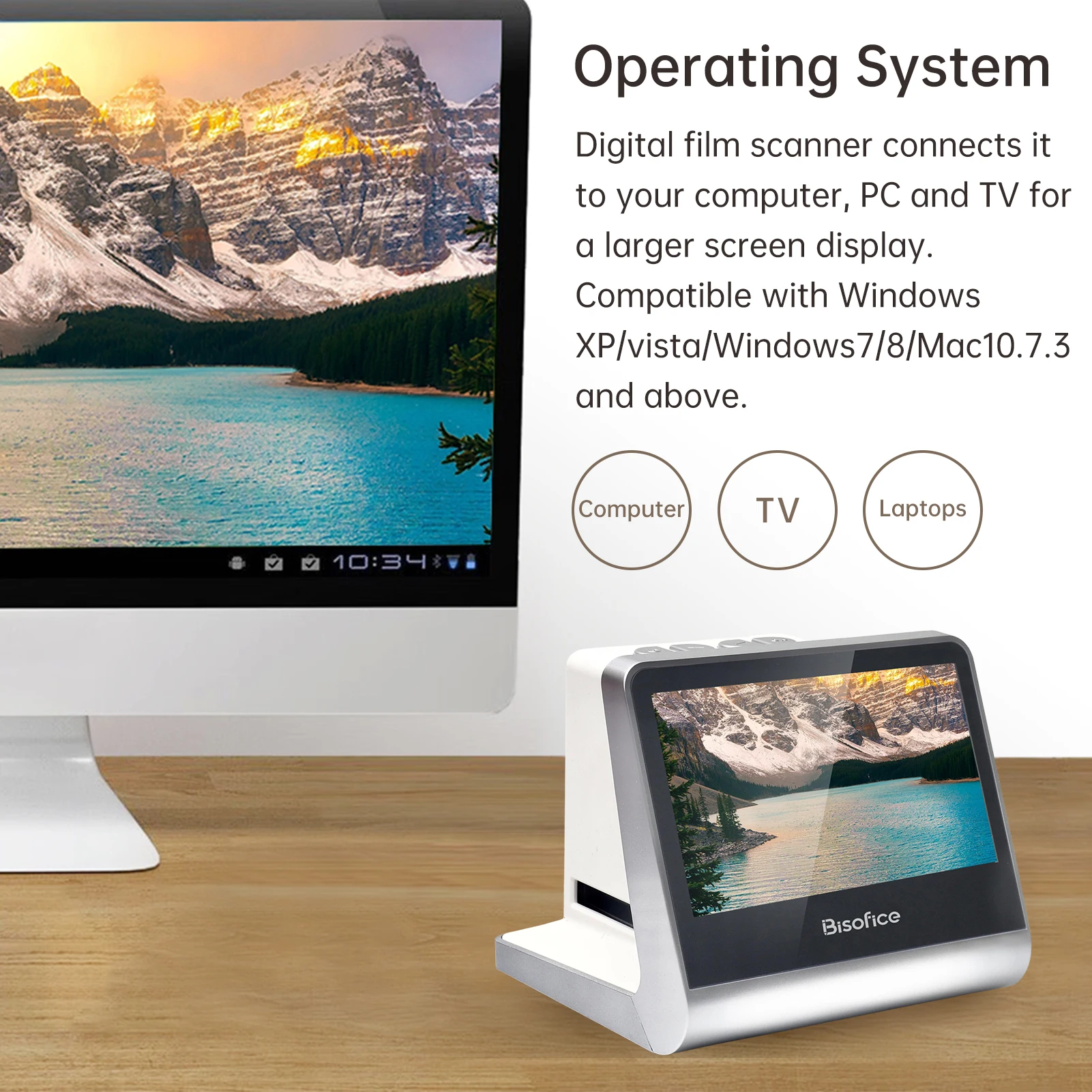Operating System Support: Digital film scanner connects it to your computer, PC and TV for a larger screen display. Compatible with Windows XP /vist/Windows7/8/ Mac10.7.3 and above.