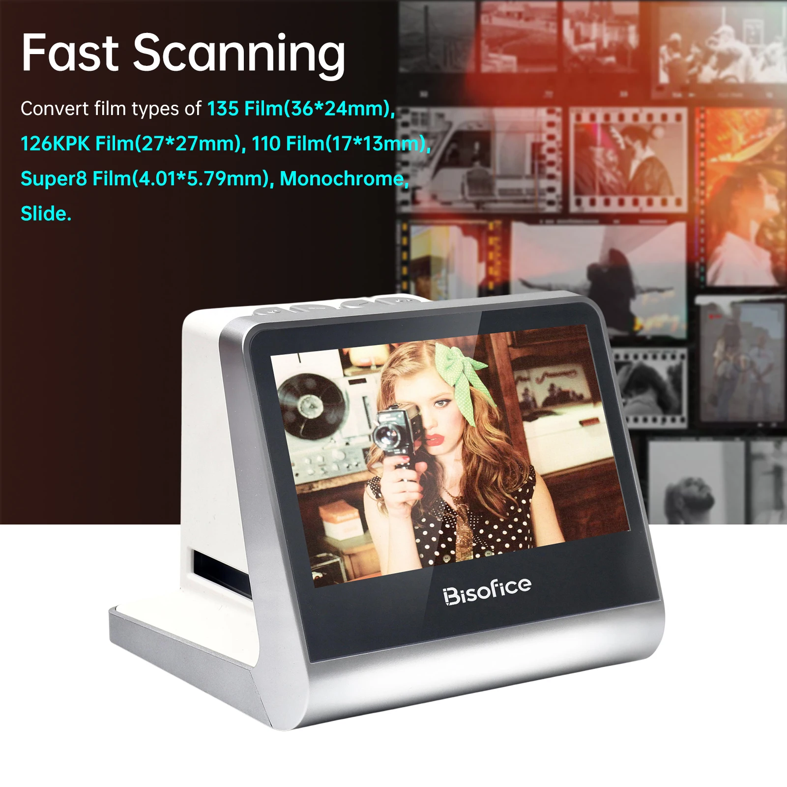 Bisofice Film and Slide Scanner 5” LCD Screen for 135 Film/126KPK /110 Film/Super8/ Monochrome/Slide to Digital JPEG Photos