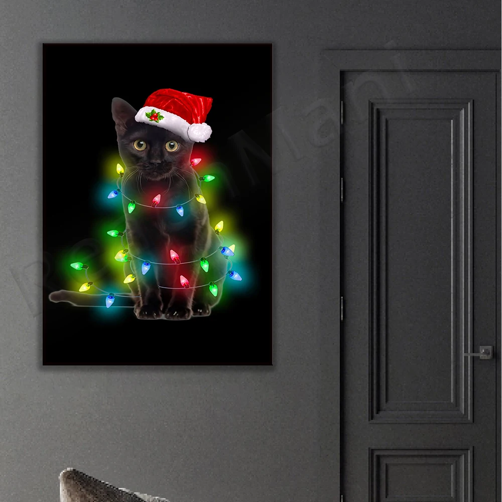 Black cat in Christmas poster, printable Merry Christmas cat, cat Christmas decoration, holiday sign decoration, holiday gift, C