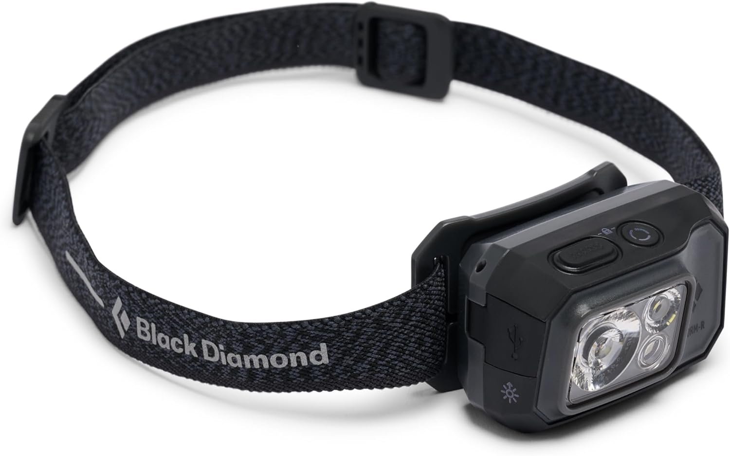 BLACK DIAMOND Storm 500-R Rechargeable LED Headlamp, Waterproof and Dimmable for Camping, Hiking, Running, Hunting, Work with Red Light Headlamp Mode, Graphite