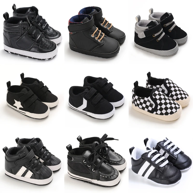 Black Fashion Casual Shoes Newborn Boys And Girls Non Slip First Walkers Infants Toddlers Comfortable Crib Shoes Kids Sneaker