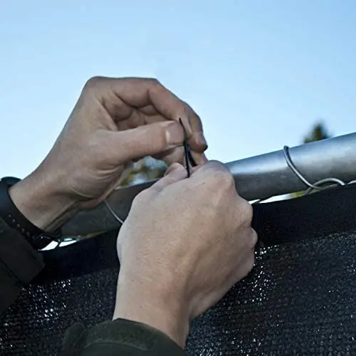 Easy to install: Use zip ties to fasten the grommets to the fence in each side. Our fence screen is equipped with denser grommets and straps to keep the fence closer to your fence.