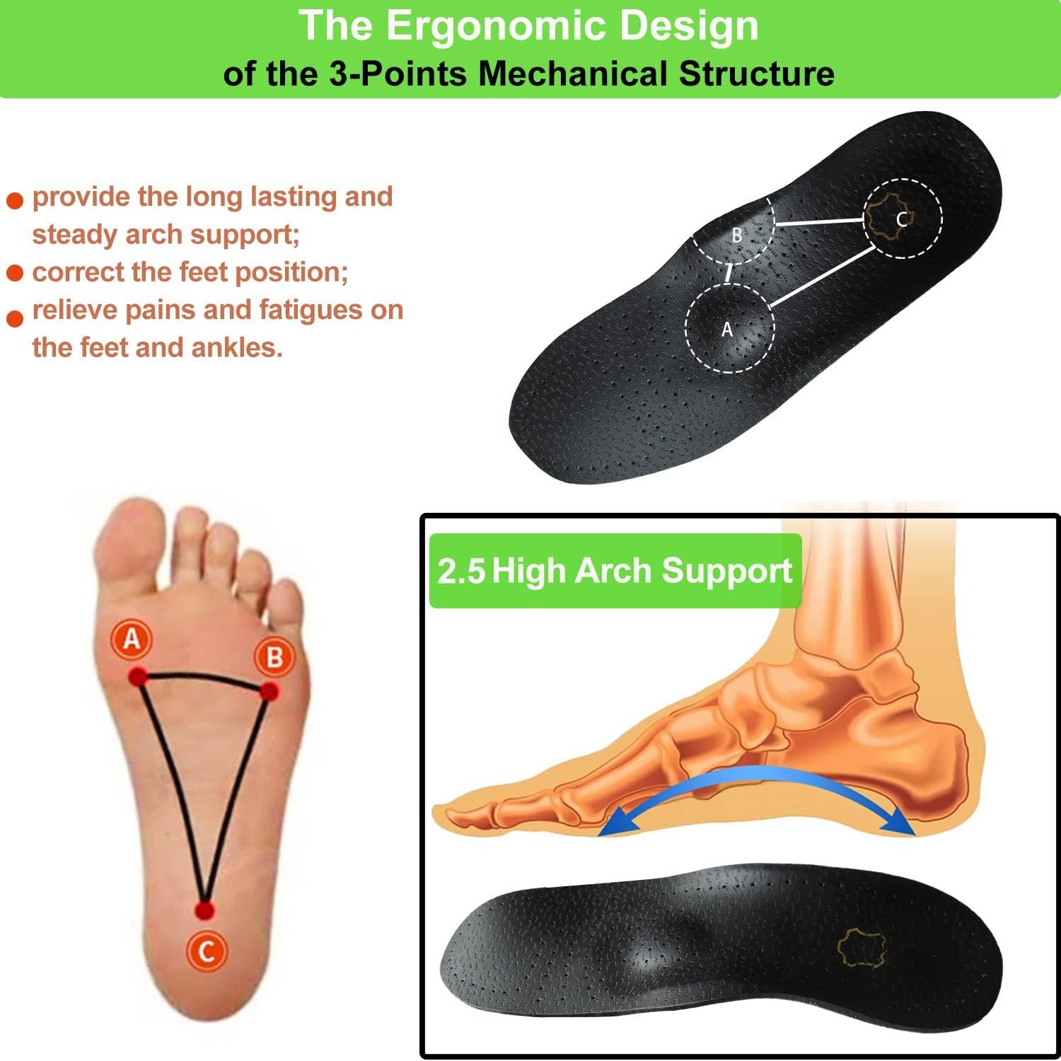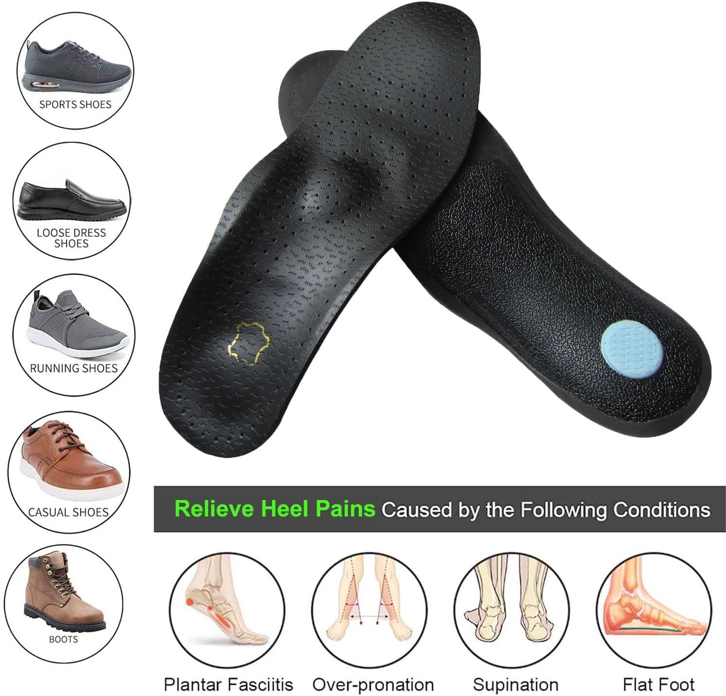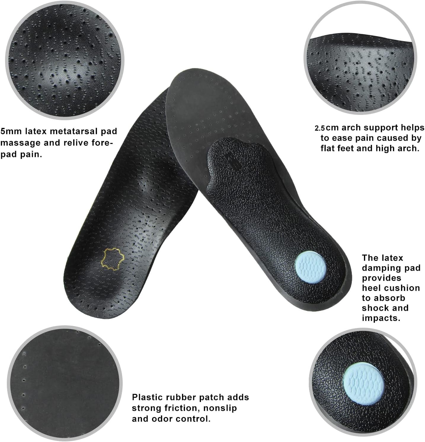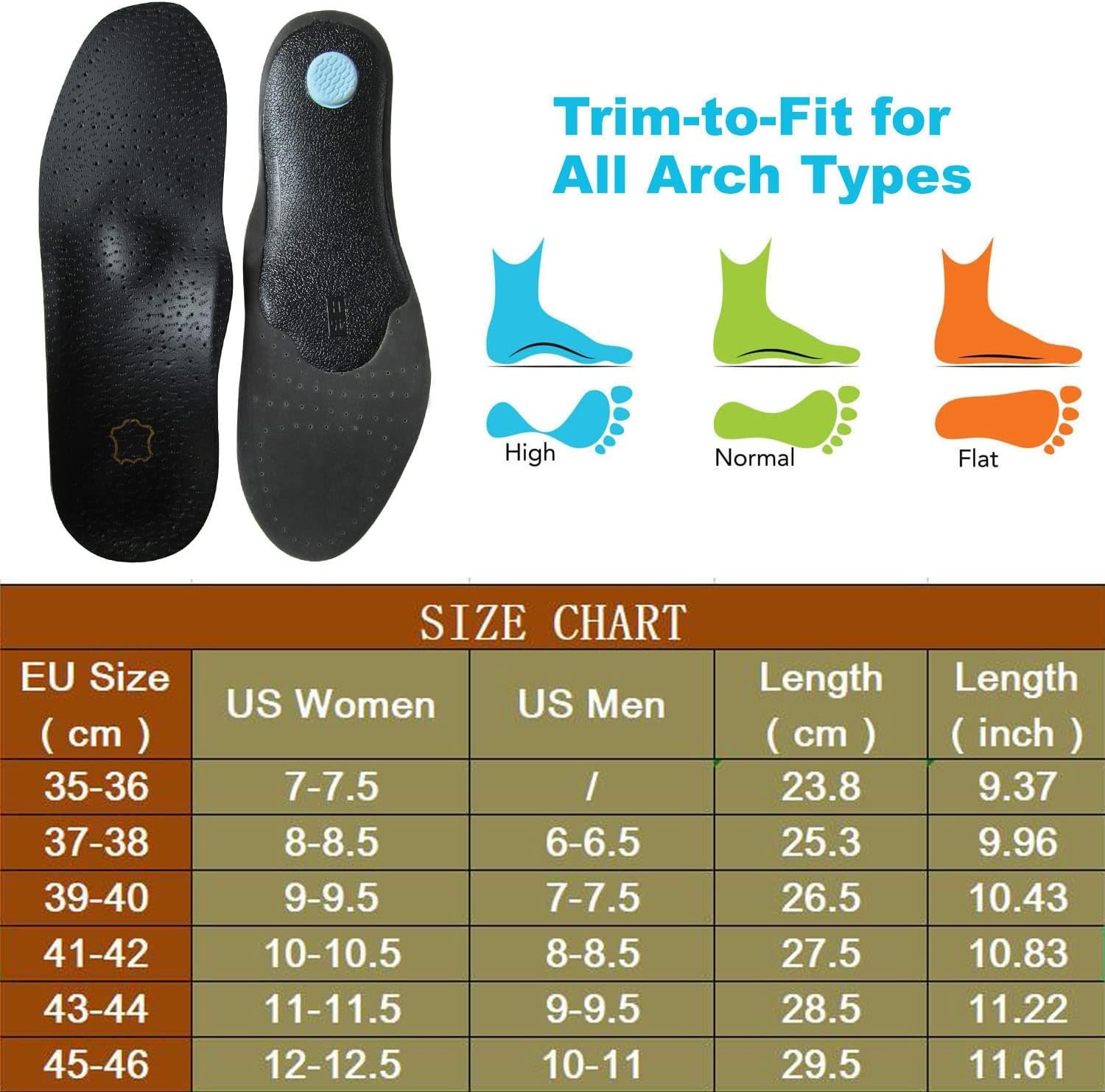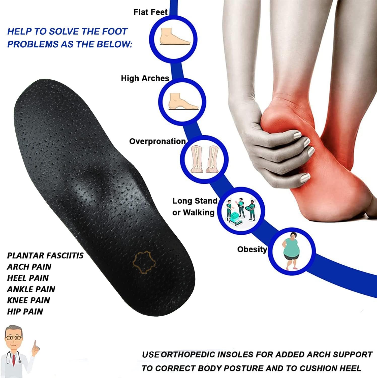 Full Length Orthotic Leather Insoles for Flat Feet Plantar Fasciitis Arch Support Pain Relief: