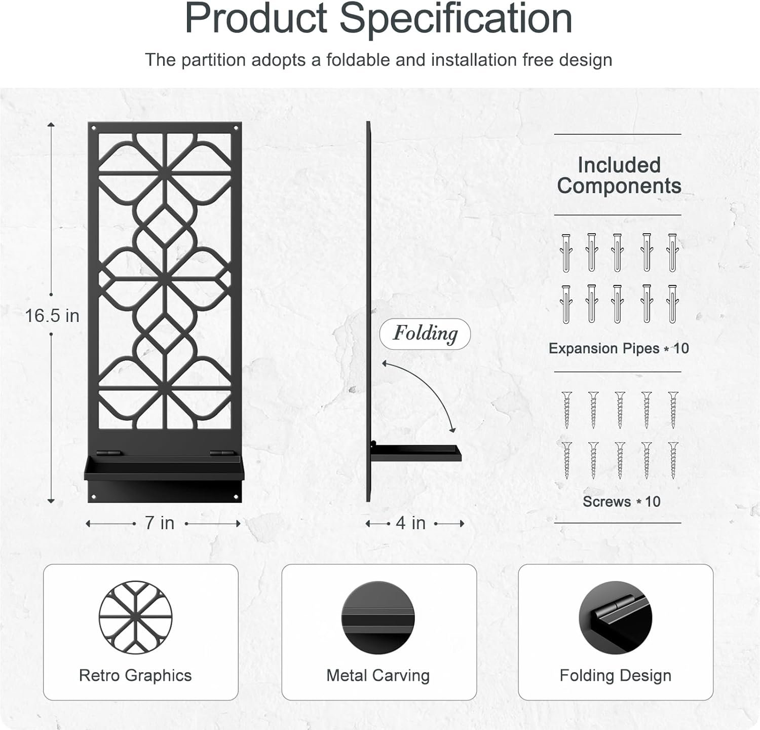 Easy Assemble: The partition adopts a foldable and installation free design. The product includes an accessory kit for easy hanging on the w