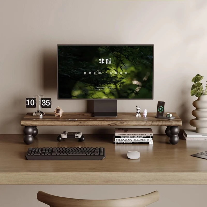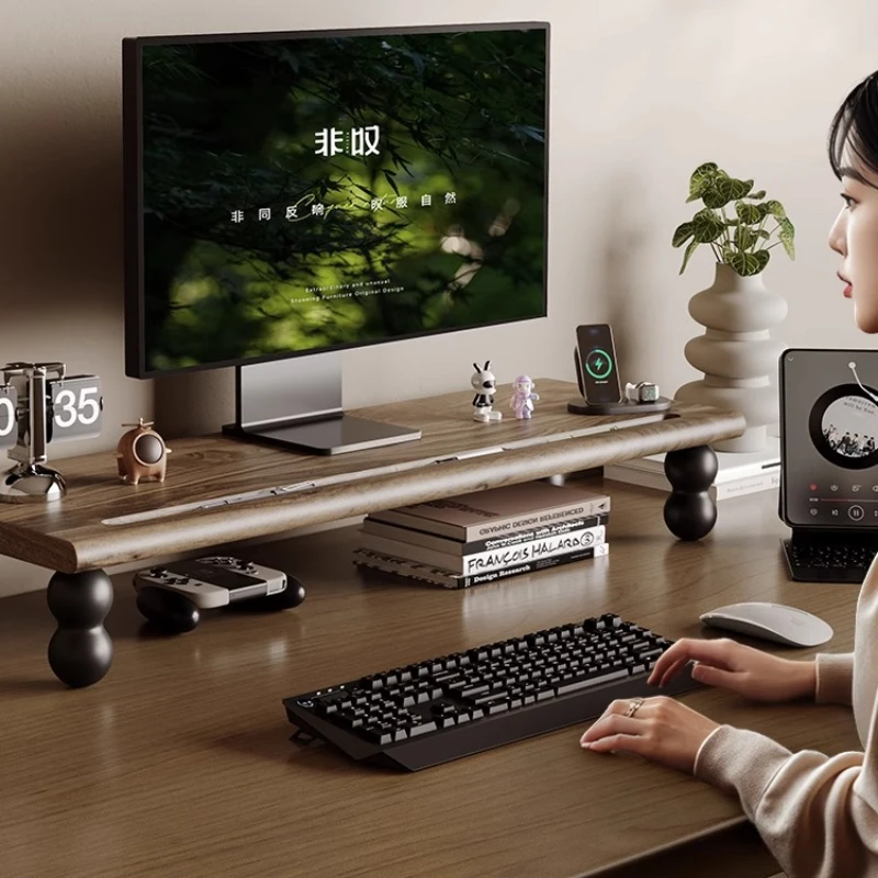 Black Walnut Monitor Stand Wooden Computer Screen Riser with Keyboard Storage Desk Organizer Shelf for Office & Home Workspace