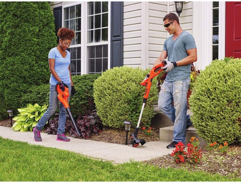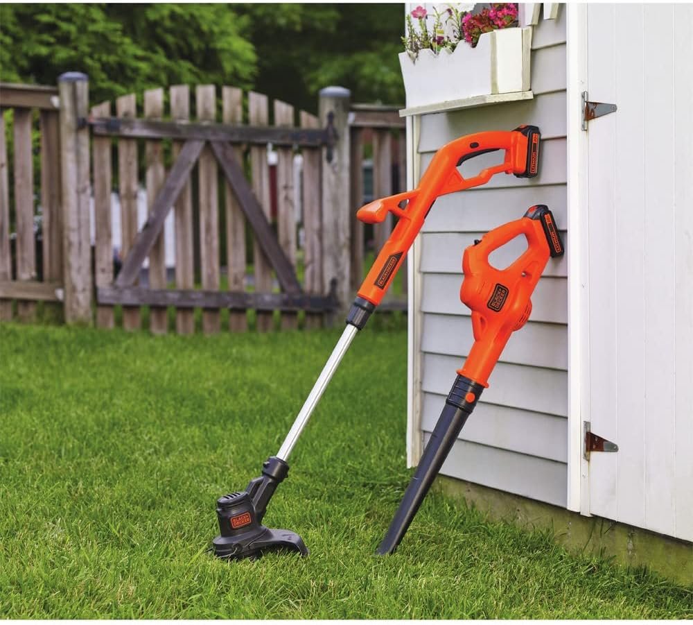 You don’t need a whole arsenal of lawn care equipment or a crew of personal landscapers to achieve a neatly groomed outdoor space. Just turn to BLACK+DECKER’s 2in1 cordless string trimmer/edger + sweeper combo kit to get the job done. The 10 in. cordless string trimmer/edger manages overgrowth and makes lawn borders look nice and crisp, all while keeping you comfortable in an upright position. The AFS AUTOMATIC FEED SPOOL automatically feeds the trimmer line, so no bumping is required, and an adjustable angle means you can seamlessly pivot between edging and trimming your lawn. And when you’re all done, use the lightweight hard-surface sweeper to clear away debris quietly. Both tools utilize a powerful and efficient 20V MAX* POWERCONNECT. When you’re finished using one tool, simply insert the battery into the next, or use another battery that’s fully charged. This kit includes 2 long-lasting batteries that are also compatible with other tools within the system. *Maximum initial battery voltage (measured without a workload) is 20 volts. Nominal voltage is 18 volts.