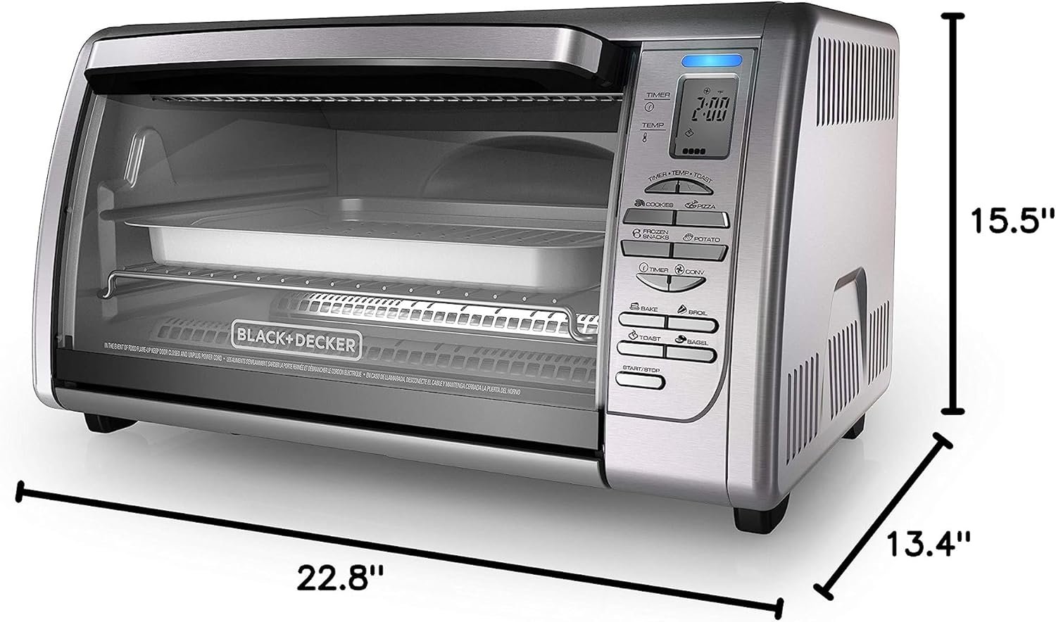 Black+Decker Countertop Convection Toaster Oven, 8 One-touch Cooking Functions, Stainless Steel