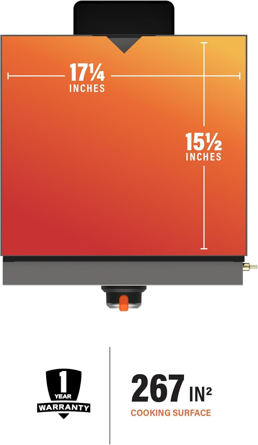 Surprisingly Spacious Cooking Surface: Cook a wide variety of foods for every meal on this versatile griddle top. With 267 square inches of cooking space, this griddle cooks enough to feed up to 2-4 people while also being compact and portable.