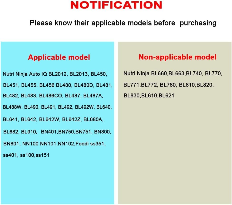 Perfect Fit for Various Ninja Blender Models: Our replacement blender cups are compatible with a wide range of Nutri Ninja Auto IQ Blender models, including Nutri Ninja Auto IQ BL2012, BL2013, BL450, BL480, BL480D, BL481, BL482, BL483, BL486CO, BL487, BL487A, BL488W, BL490, BL491, BL492, BL492W, BL640, BL641, BL642, BL642W, BL642Z, BL680A, BL682, BN800, BN801, NN100 NN101,NN102,Foodi ss351, ss401, ss100,ss151 and more.