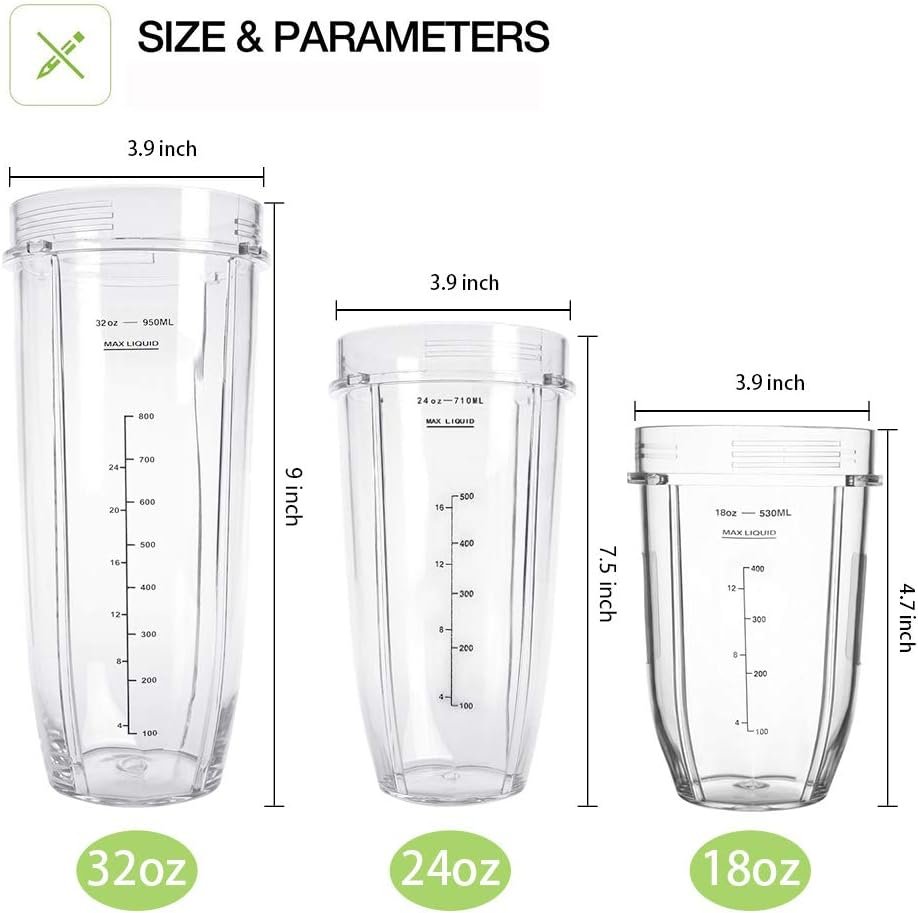 Check Dimensions :With an outer diameter of standard 100mm (3.9inch) and a tall cup height of 230mm (9inch), they fit perfectly into your blender. Our package includes 2 x 32oz replacement cups and 2 x flip top lids