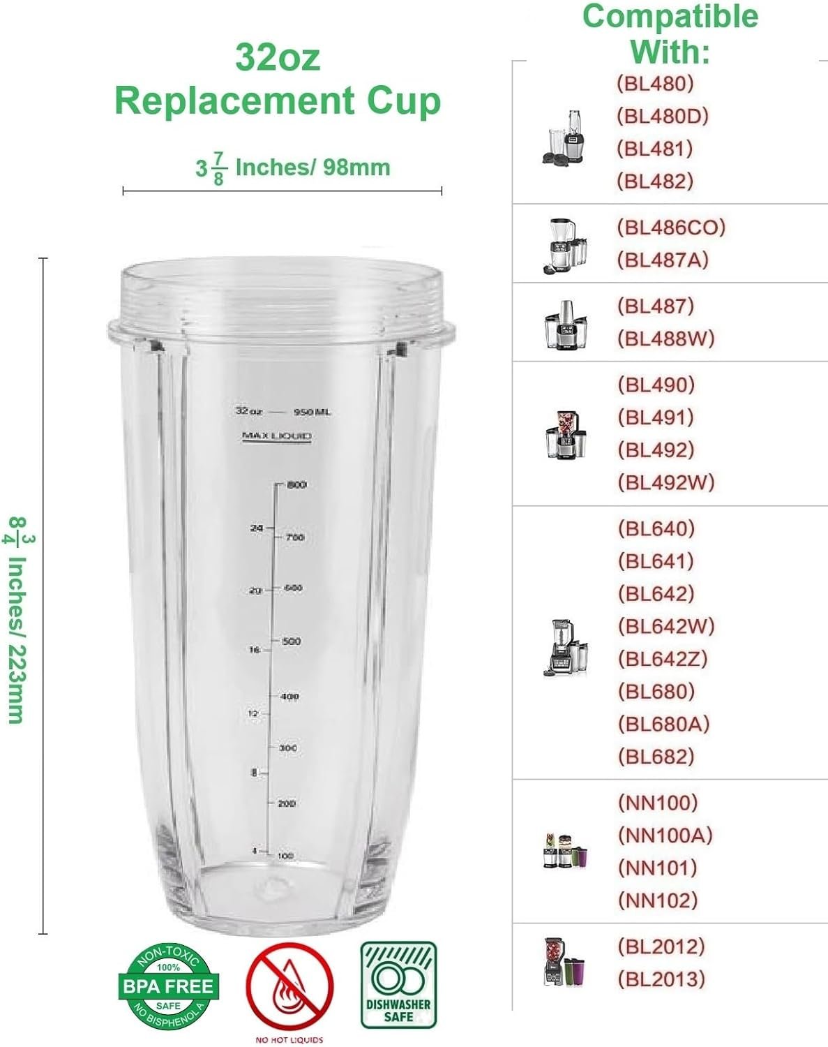 HIGH QUALITY: Our Auto-IQ ninja compatible replacements have standard and metric measurement markings scale line for easy measurement of your drink contents so you can make the perfect mix everytime. For added convenience, it is also dishwasher safe and BPA Free.