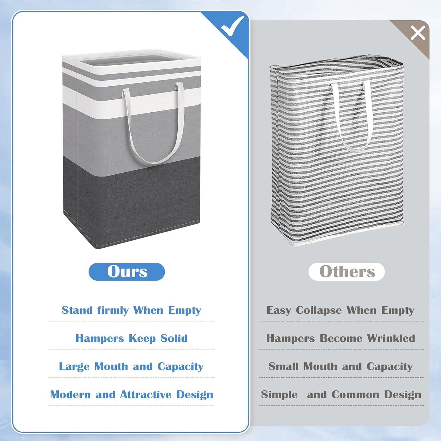 Freestanding Structure: The laundry basket is made of PEVA that can make it stand firmly upright for a long time even when empty