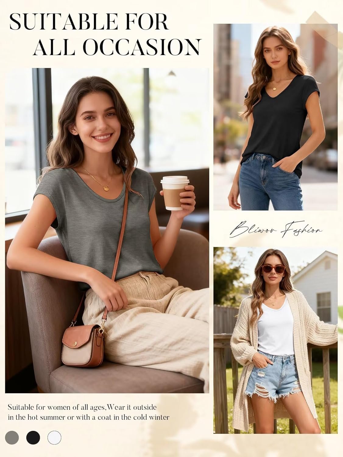 The video showcases the product in use.The video guides you through product setup.The video compares multiple products.The video shows the product being unpacked. Bliwov Womens Summer Cap Sleeve U Neck T Shirts Merchant Video