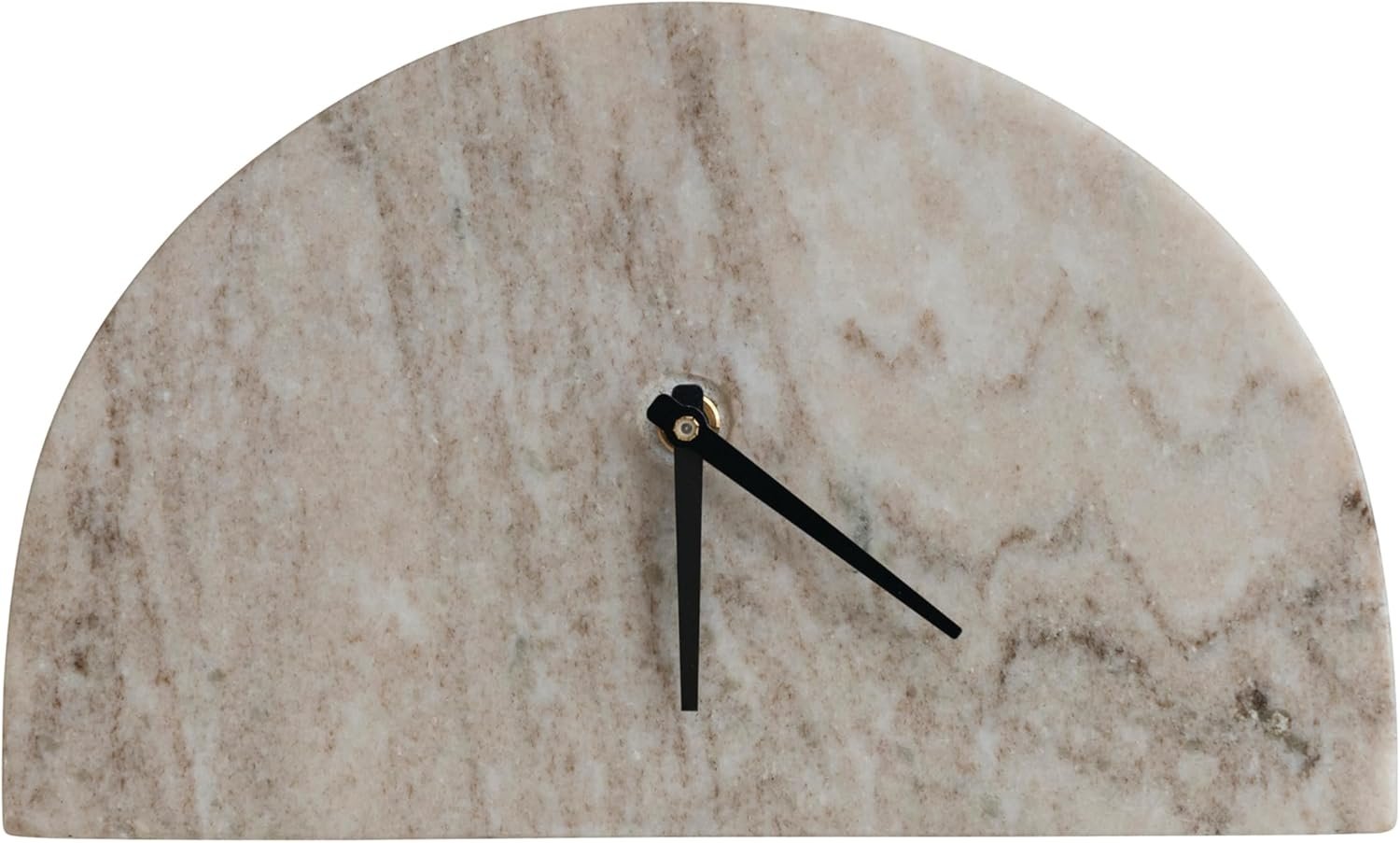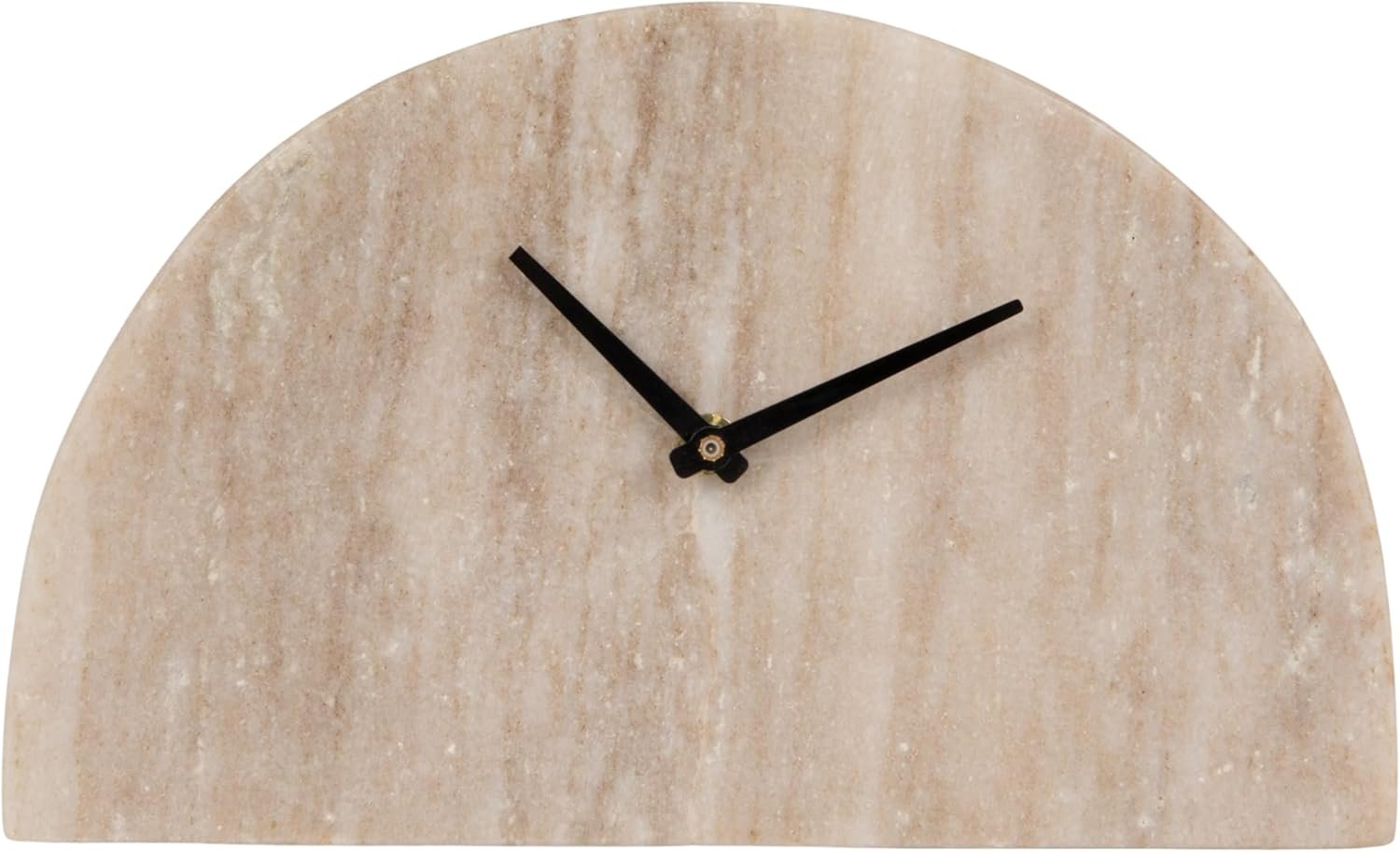Bloomingville Decorative Half Moon Marble Mantel Clock, Beige and Black