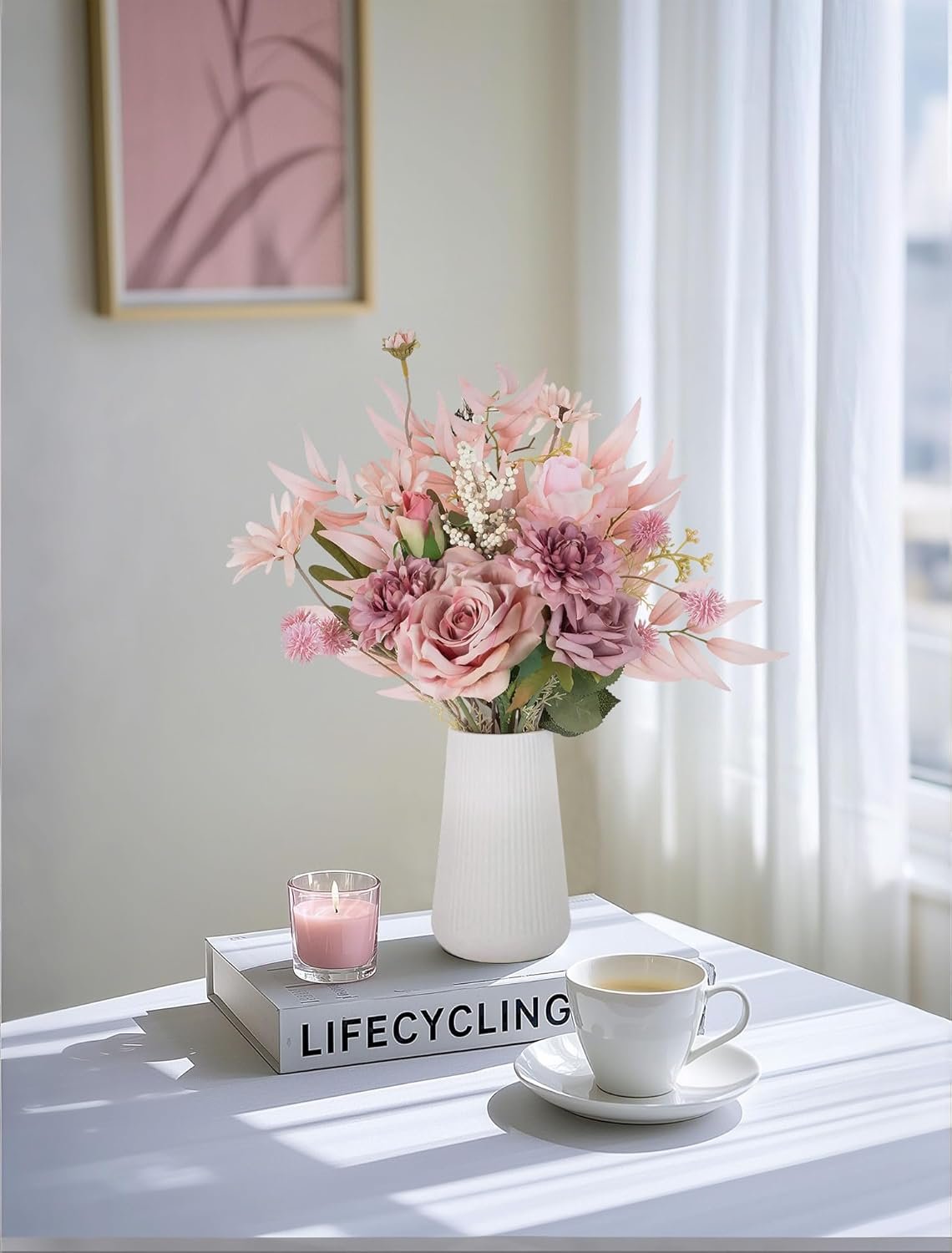Perfect Gift: The artificial flowers with vase makes a thoughtful and unique gift for weddings, birthdays, or baby showers, anniversaries and housewarming, adding a pop of color to event or party and creating a cozy atmosphere in your friend’s new home