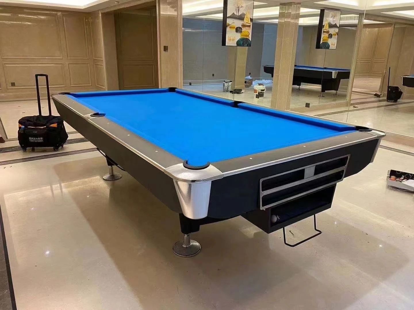 Blue Stone Slate Solid Wood America Pool Table Billiard Table in China 7ft/8ft/9ft