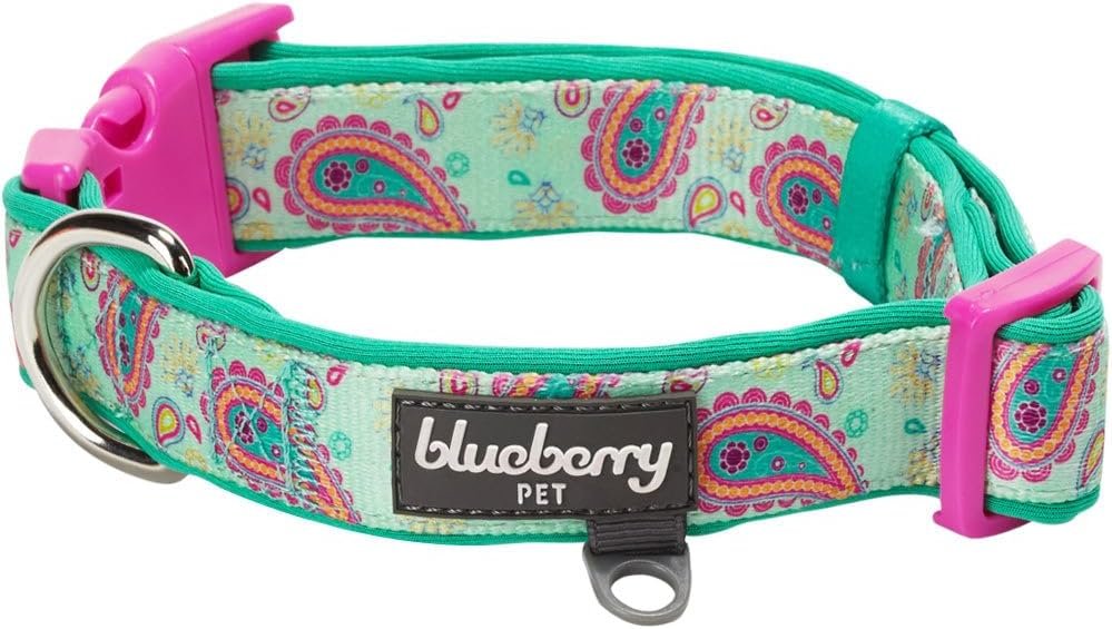 Blueberry Pet Dog Collar for Large Dogs, Paisley Flower Print, Emerald Green, Medium, Adjustable Neoprene Padded, Durable Large Dog Collar, Girl Dog Collars, Spring Pink Dog Collar