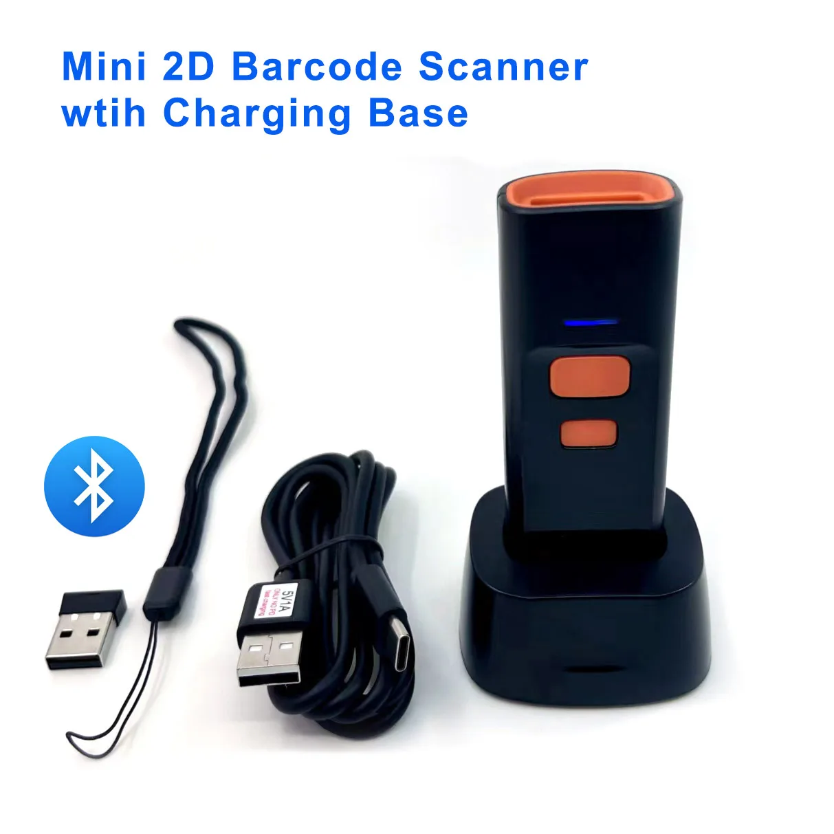 Bluetooth 2D Barcode Reader with Charge Base Support Mobile Phone iPad Wireless Barcode Scanner Mini 1D 2D QR Bar Code Reader