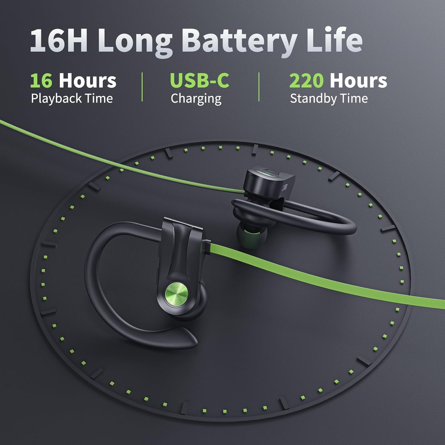 Long-lasting 16-hour Battery Life: With a durable and long-lasting battery, these wireless headphones can provide up to 16 hours of continuous music playback. This means that your can enjoy their favorite tunes or make important calls without worrying about running out of battery during your workout sessions. (Note: Please use the charging cable provided on the package)