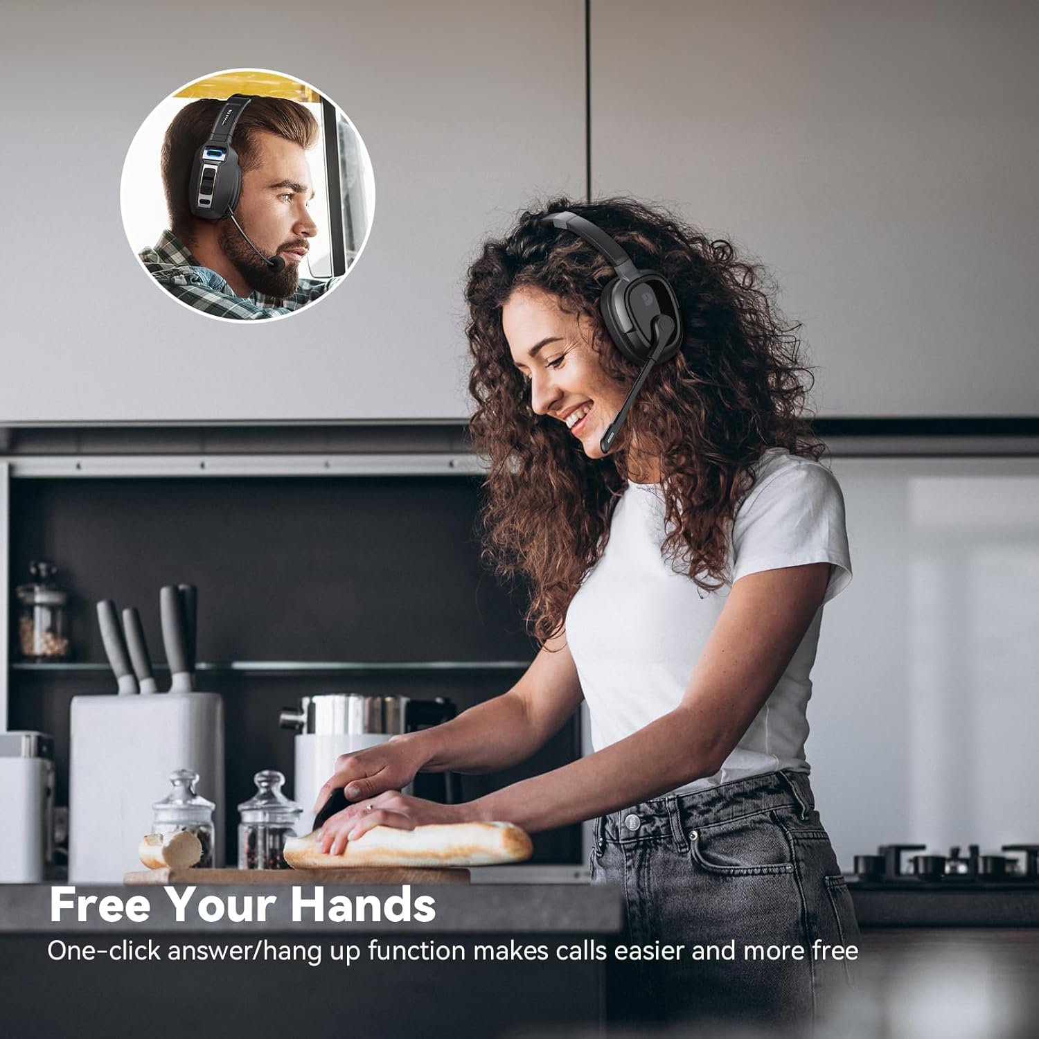 Easy Calls: Use the MFB of bluetooth headset with microphone to experience one-click calling, ideal for busy moments when your hands are tied. You no longer need to get out of the kitchen or stop your chores because of a call, just one click the MFB button.