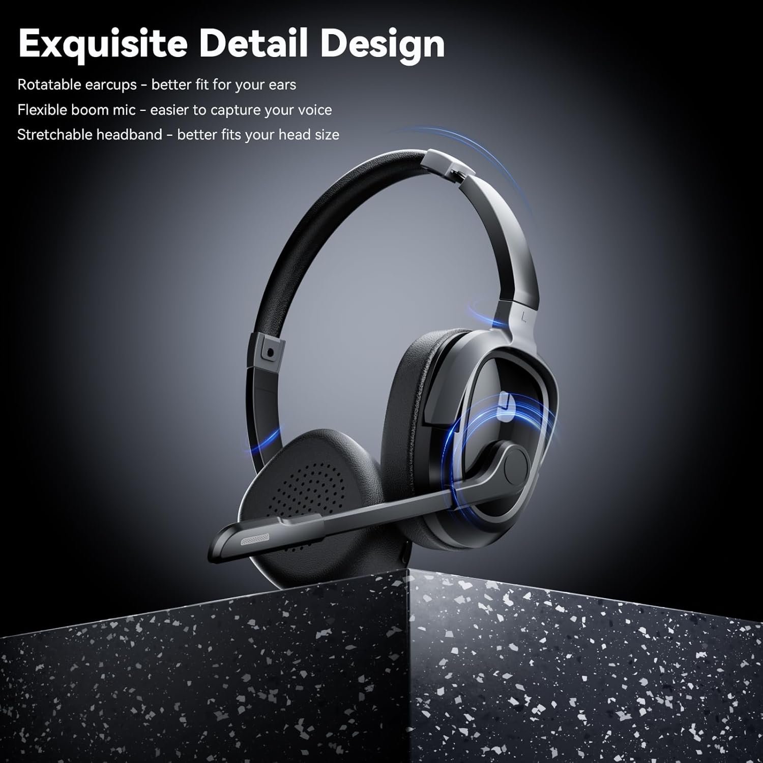 Bluetooth Headset for Work, 65Hrs Working Time, Wireless Headphones with Mic