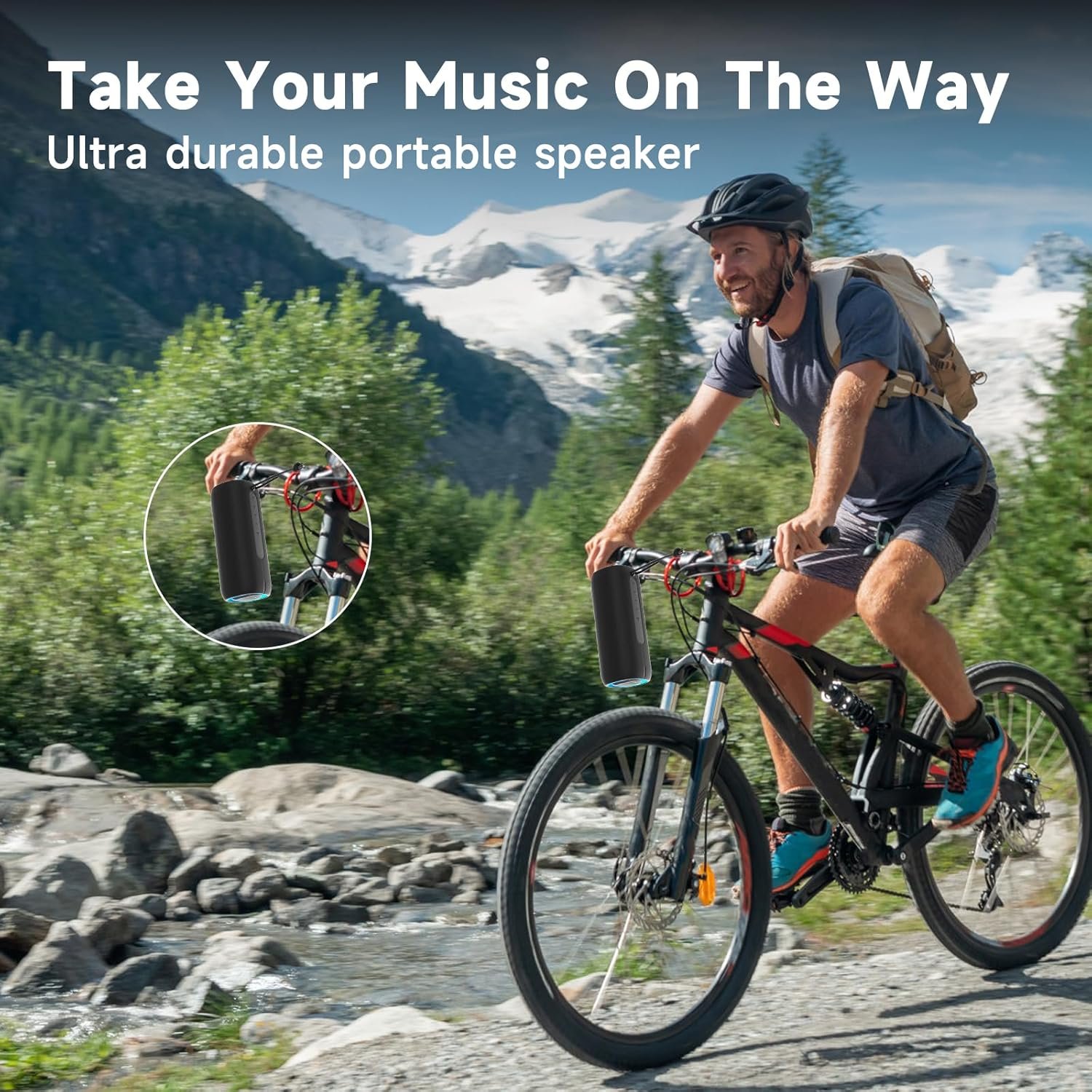 【Waterproof and Rugged Design】The waterproof bluetooth speaker has an IPX5 waterproof rating to withstand rain, spills and splashes. It’s designed to withstand bumps and drops, more durable than others, and compact and easy to carry. Perfect for pool parties, beach parties, barbecues, biking, hiking, camping and more.
