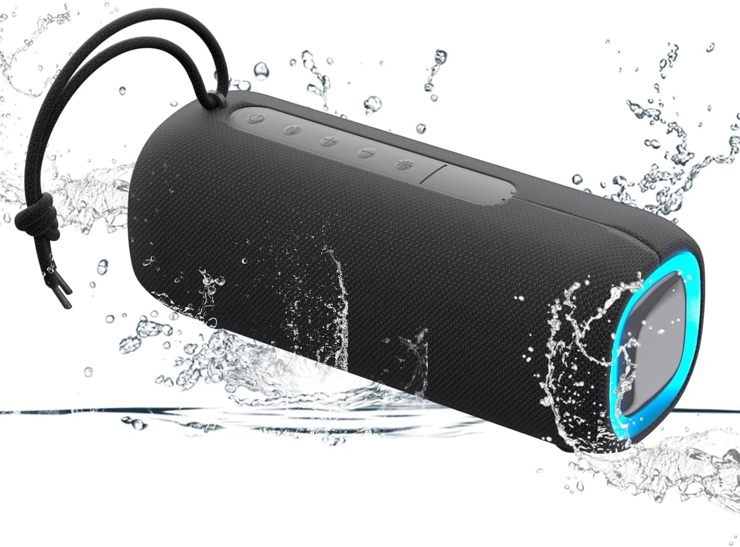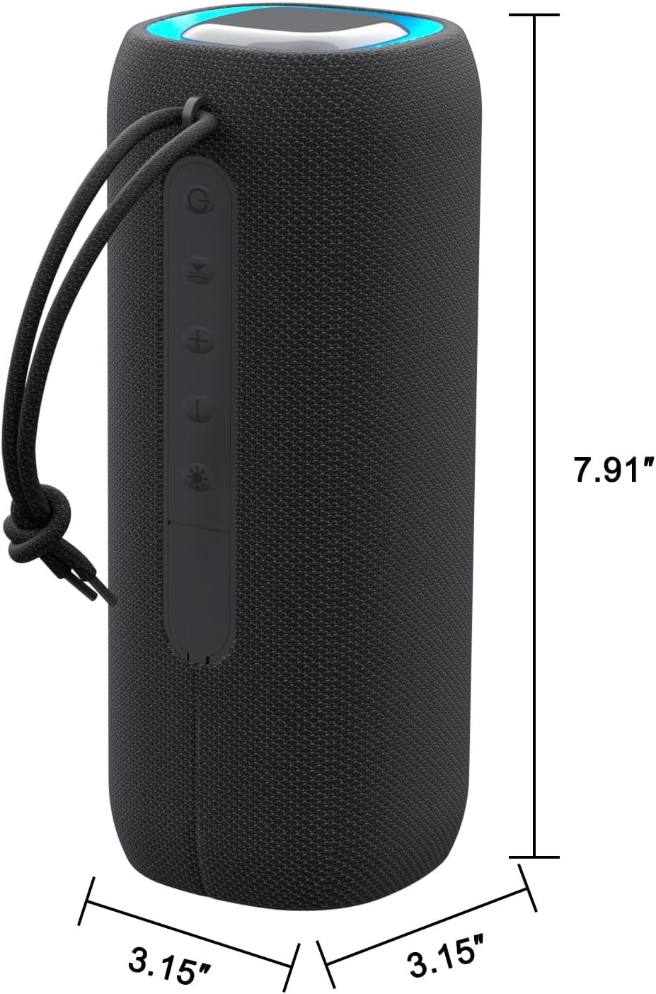 Bluetooth Speaker, Portable Wireless Clear Loud Stereo Sound IPX5 Waterproof with RGB Lights BT5.3 Long Playtime TWS Pairing,for Home Party Outdoor Beach,Great Gift Choice (Black)