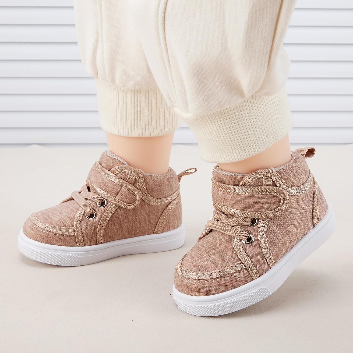 Soft and flexible underfoot, easy to put on, and made with durable materials, the baby tennis shoes is just what little/tinny feet need to crawl, start standing,learn/train to walk, toddler, take first step,run,and play in comfort