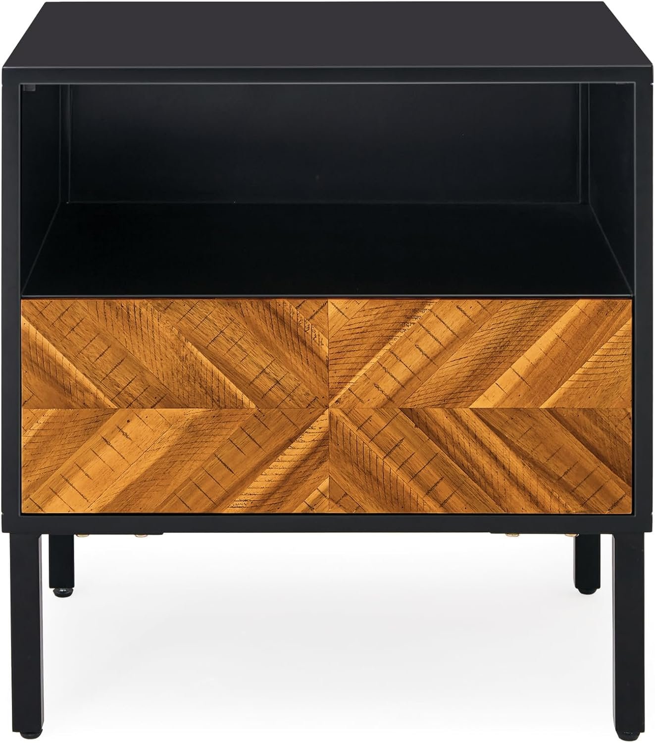 Bme Vivian Solid Wood Nightstand, End Table, Bedside Table with Herringbone Pattern for Rustic Bedroom, Easy Assembly, Rustic Golden Brown and Black