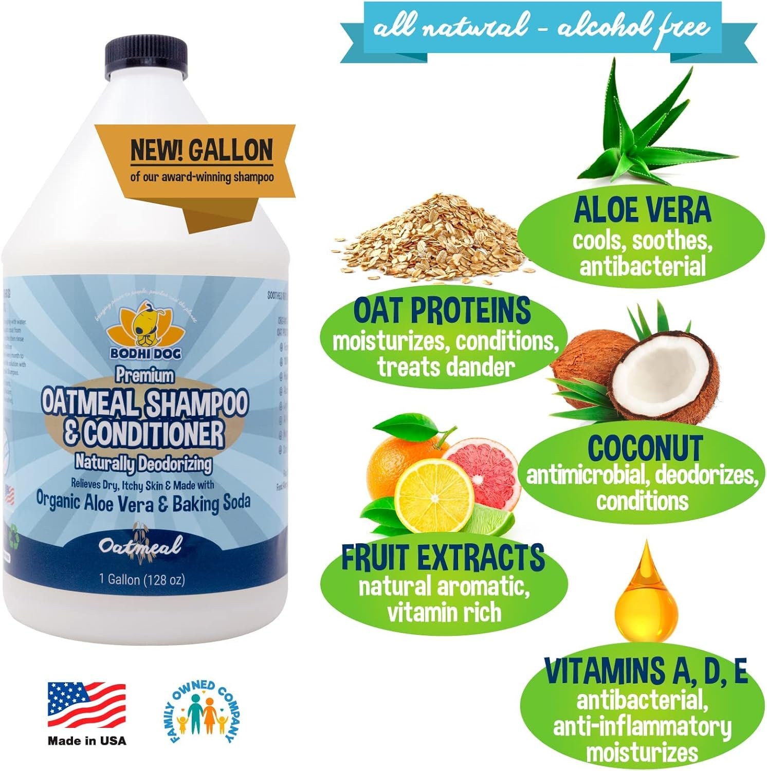 Bodhi Dog Oatmeal Shampoo & Conditioner – Hypoallergenic Formula – Naturally Deodorize Dogs, Cats & Pets – Made w/Organic Ingredients – Moisturizes Dry & Itchy Skin – Made in USA (Oatmeal, 1 Gallon)