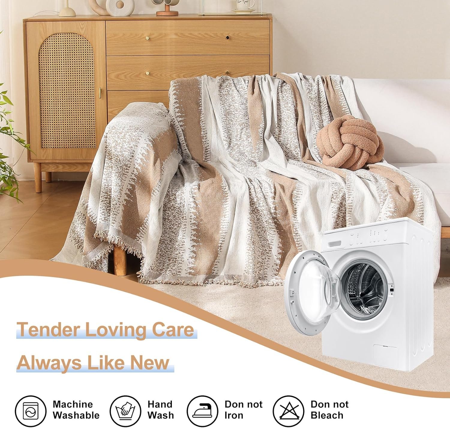Easily to Use and Care: Our couch throw cover shields your furniture from spills and accidents, ensuring easy clean-up. Simply toss it in the washing machine with cold water (around 30°C) and mild detergent for hassle-free maintenance. Avoid bleach and ironing, careful care can accompany you for a longer time.