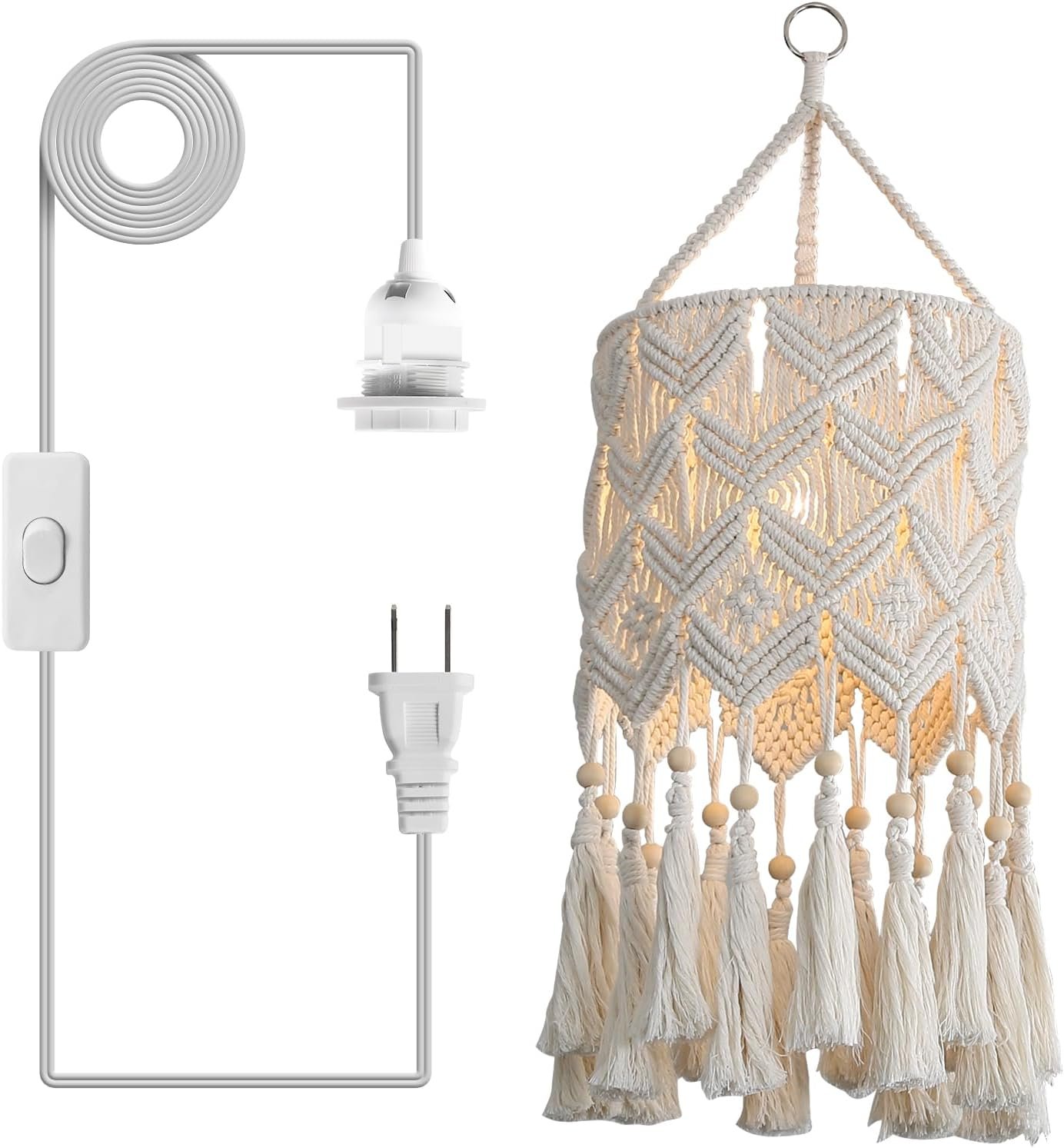 Boho Hanging Lamp Shade,Macrame Pendant Light Shade,Handmade Boho Light fixtures Hanging Lights with Plug in Cord,Boho Lamps for Home livingroom Bedroom Kitchen (Lightbulb Not Included)