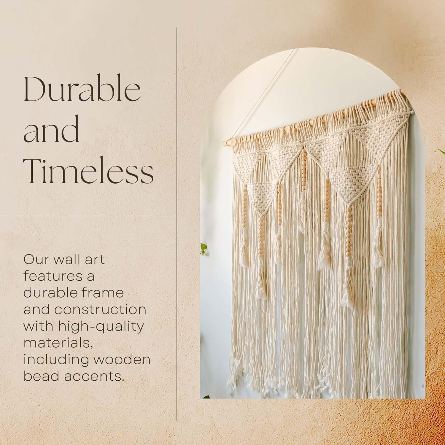 Durable and Timeless: Our wall art features a well-built frame and construction with top-quality materials, including wooden bead accents. It’s a long-lasting piece and a product of intricate craftsmanship that adds a touch of boho chic to any space.