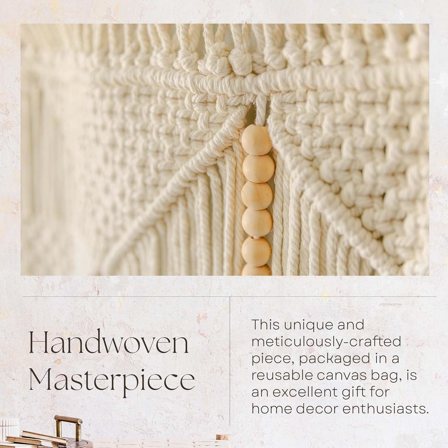 Handwoven Masterpiece: Add a touch of bohemian charm to your space with our handcrafted macrame wall hanging. This unique and meticulously-crafted piece, packaged in a reusable canvas bag, is the perfect gift for home decor enthusiasts.