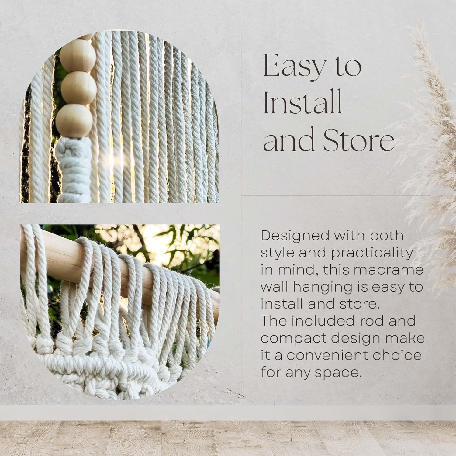 Easy To Install & Store: Our macrame wall hanging features hassle-free installation process and with its compact packaging that includes a rod and a reusable canvas bag, this beautiful wall art is convenient for any space.