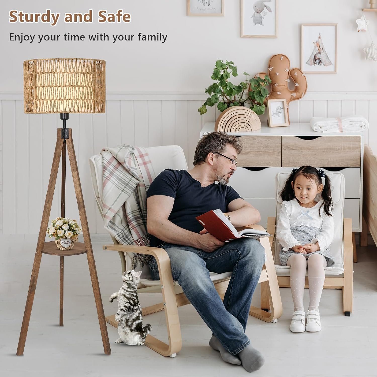 【Floor Lamp With Shelves】The mid century floor lamp is not just about lighting, it also includes a practical wooden shelf integrated into the tripod design, ideal for storing and displaying small objects like books, plants, or decorative items. This farmhouse floor lamp is versatile enough to enhance any living room, bedroom, dining room, study, office, or even as a stylish addition beside your sofa or bed.
