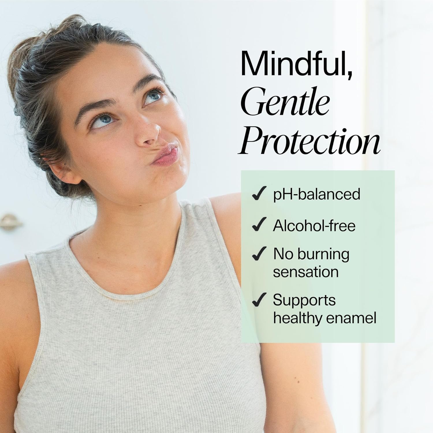 Clean, Pure Care – This mouth wash for gums supports holistic oral health. Our mouthwash gum health formula is dye-free, vegan, and gluten-free. No artificial additives or harsh chemicals – just clean, effective ingredients that work in harmony with your natural balance.