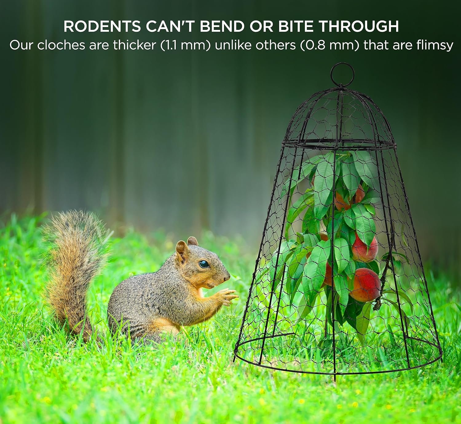 DOESN’T BREAK, DOESN’T DEFORM. Cloches with THICKER (1.1 mm) mesh, unlike some others (0.8 mm) that are flimsy and broke easily. 12″ diameter x 20″ height large garden cloche