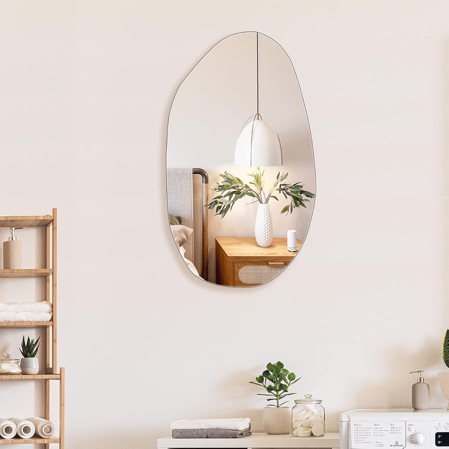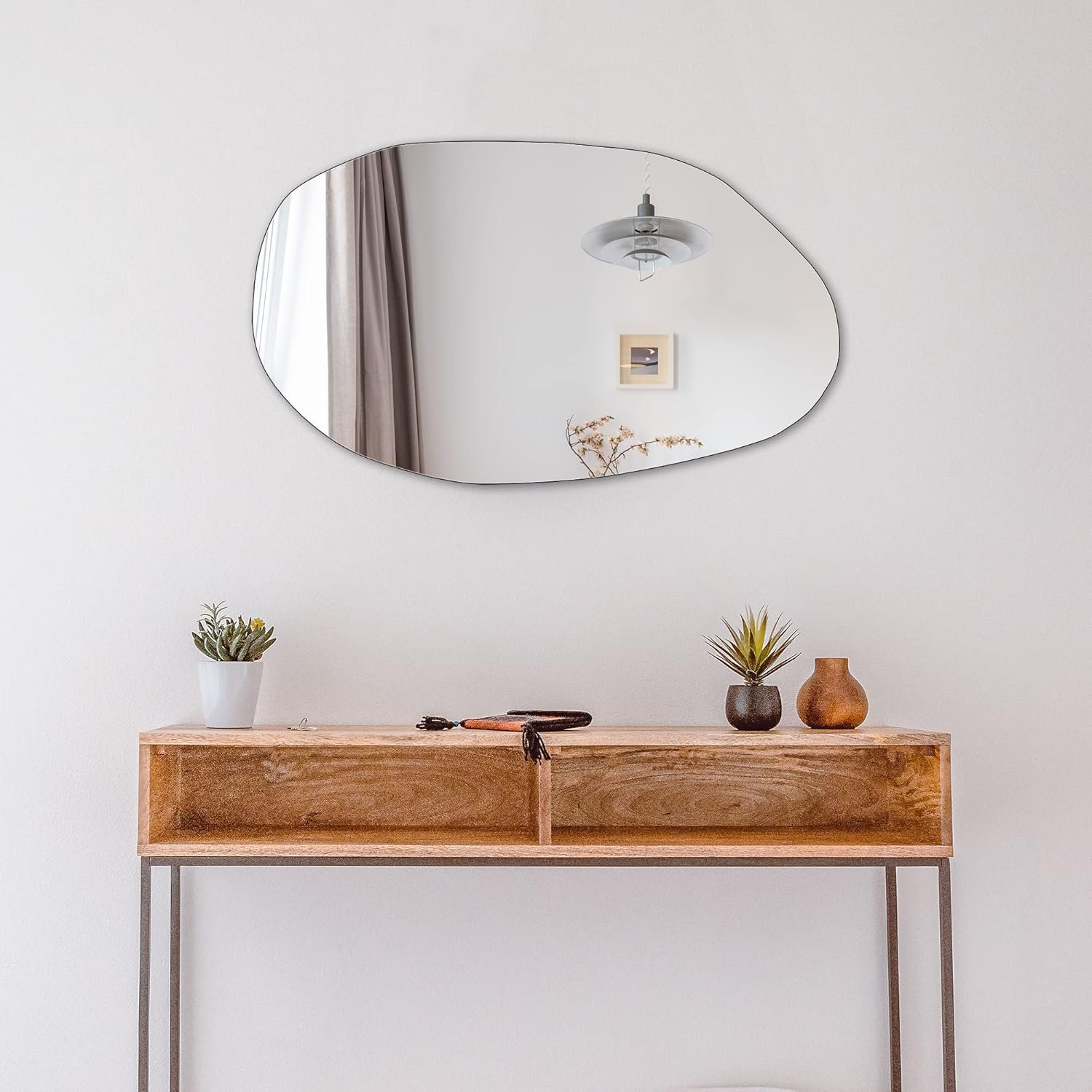 BOMINICA Irregular Wall Mirror Asymmetrical Mirror Frameless Mirror for Bathroom Living Room Entryway Bedroom, 19.5″ x 33.5″