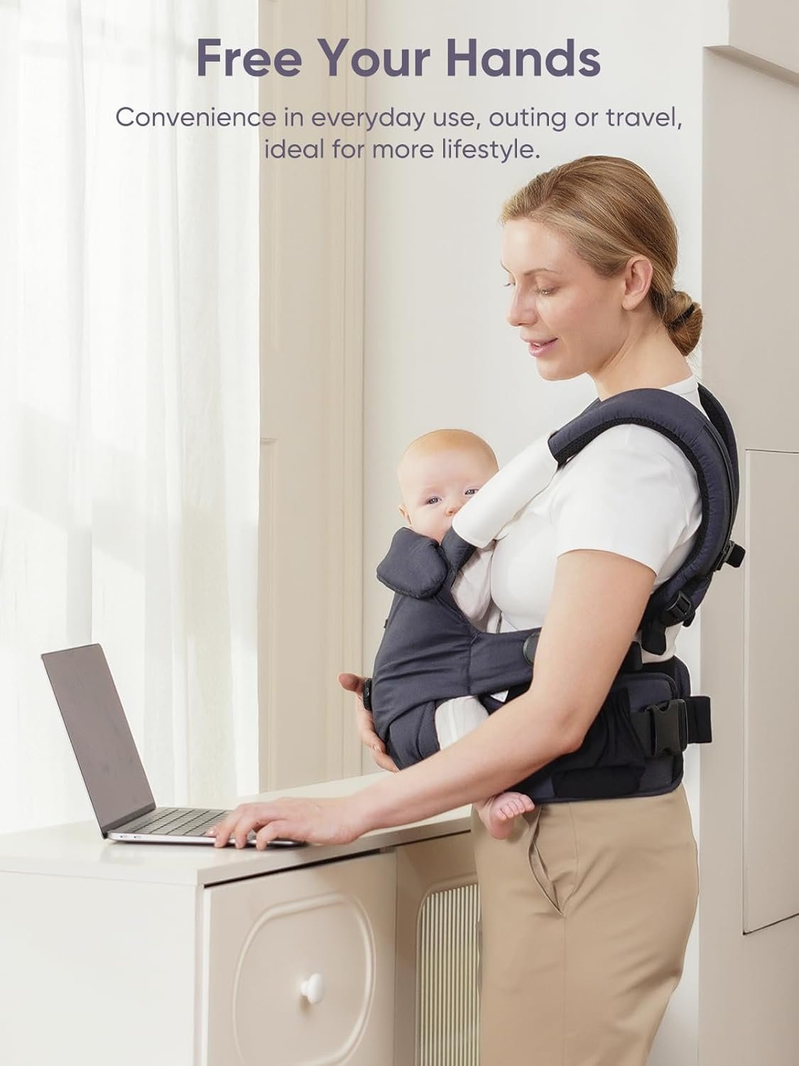 【Hands-Free Convenience for Your Lifestyle】 This baby carrier for newborns to toddlers is designed for busy parents, perfect for hands-free moments. Whether you’re working from home, doing housework, taking a walk, shopping, or traveling, its lightweight design and effortless wear make the bonoch baby carrier an ideal choice for active, on-the-go lifestyles.