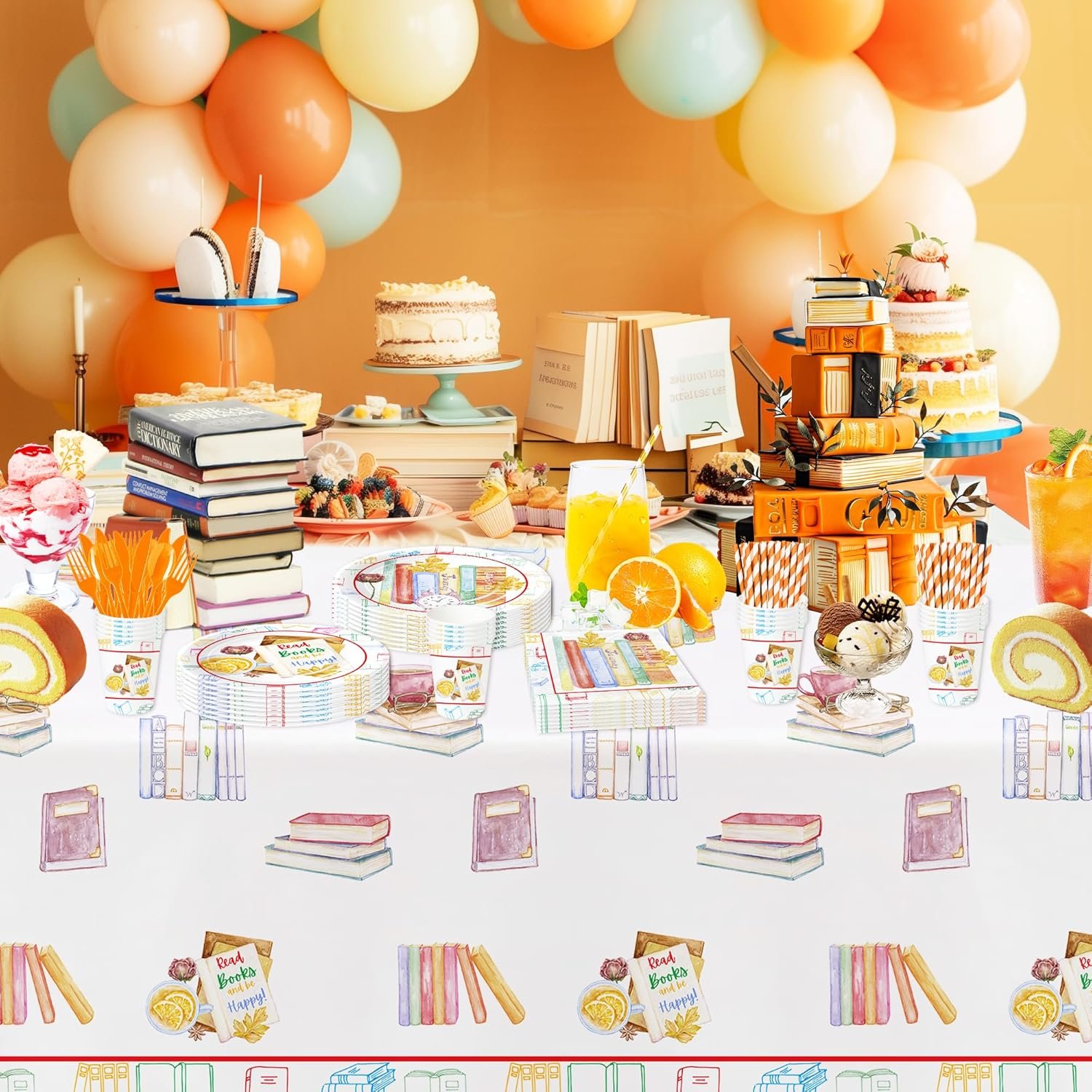 【Generous Size】3 Pcs of book club party decorations tablecloth the size 108 x 54 inches, our tablecloth is designed to fit standard-sized tables, offering versatility for various party setups. Whether hosting an intimate gathering or a larger celebration, this book library birthday party supplies tablecloth provides ample coverage