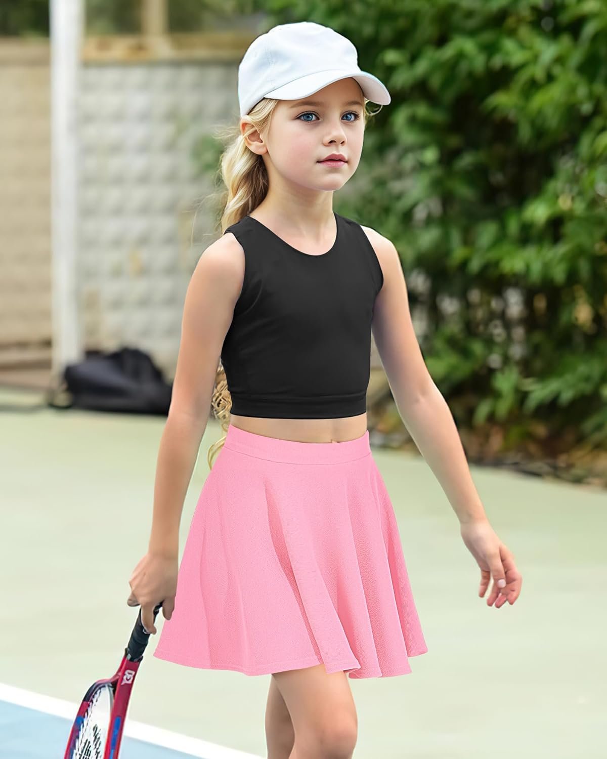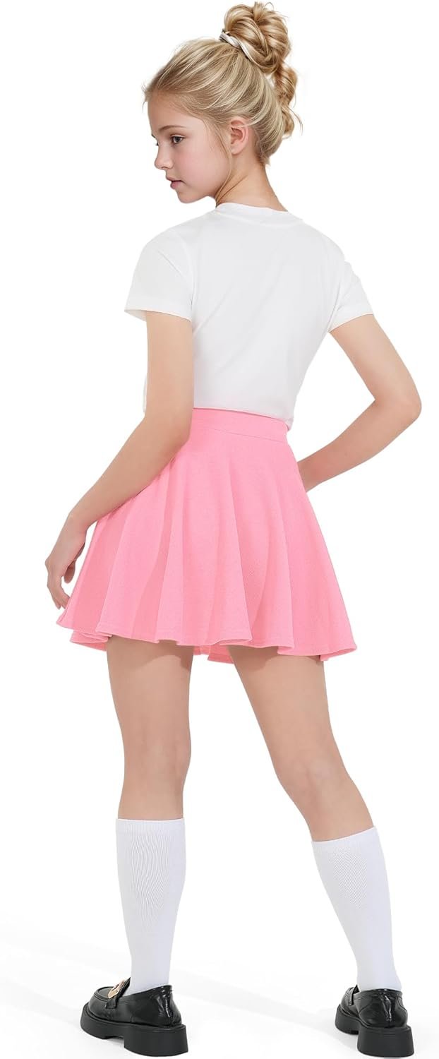 BOOPH Kids Girls Skirt Casual Mini Flare Plain Pleated Stretch Waist Skater Uniform Skirts