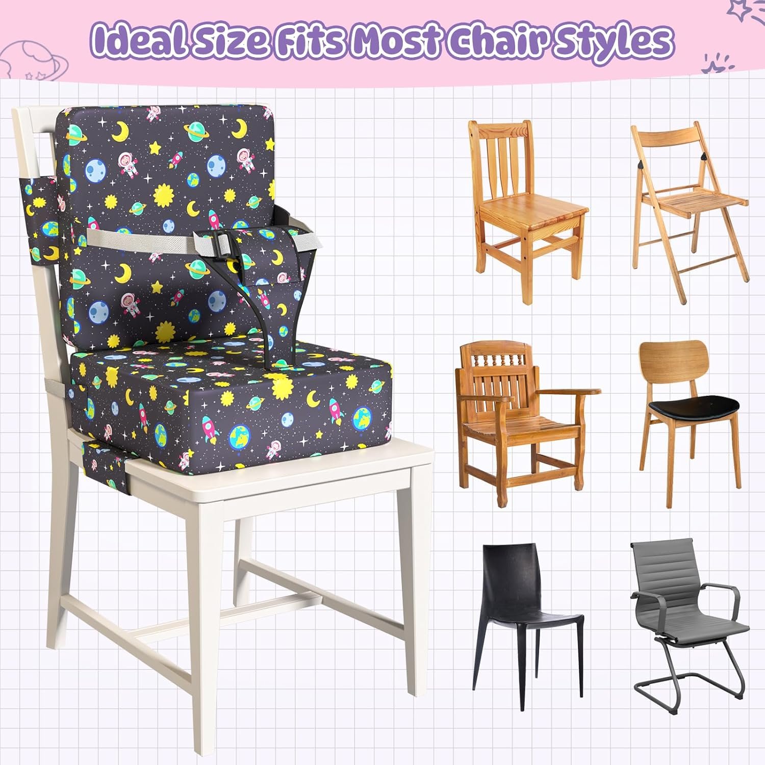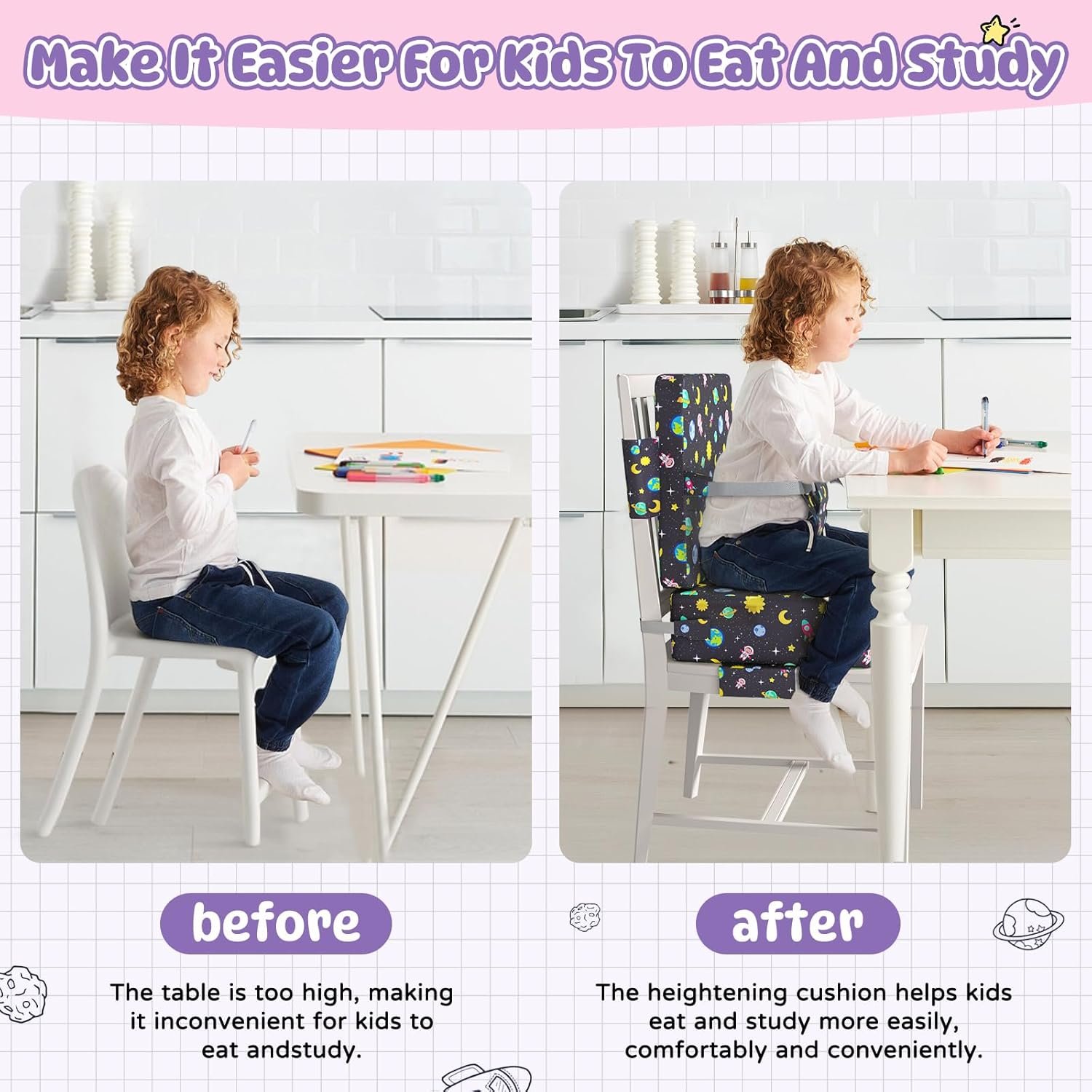 【Booster Seat Details Upgrade】We’ve extended the straps by 4 inches (10 cm) to fit most dining chairs. Additionally, reinforced stitching on the cushion prevents seam loosening and cushion tearing.